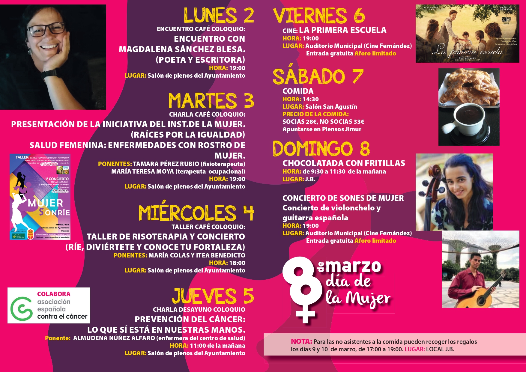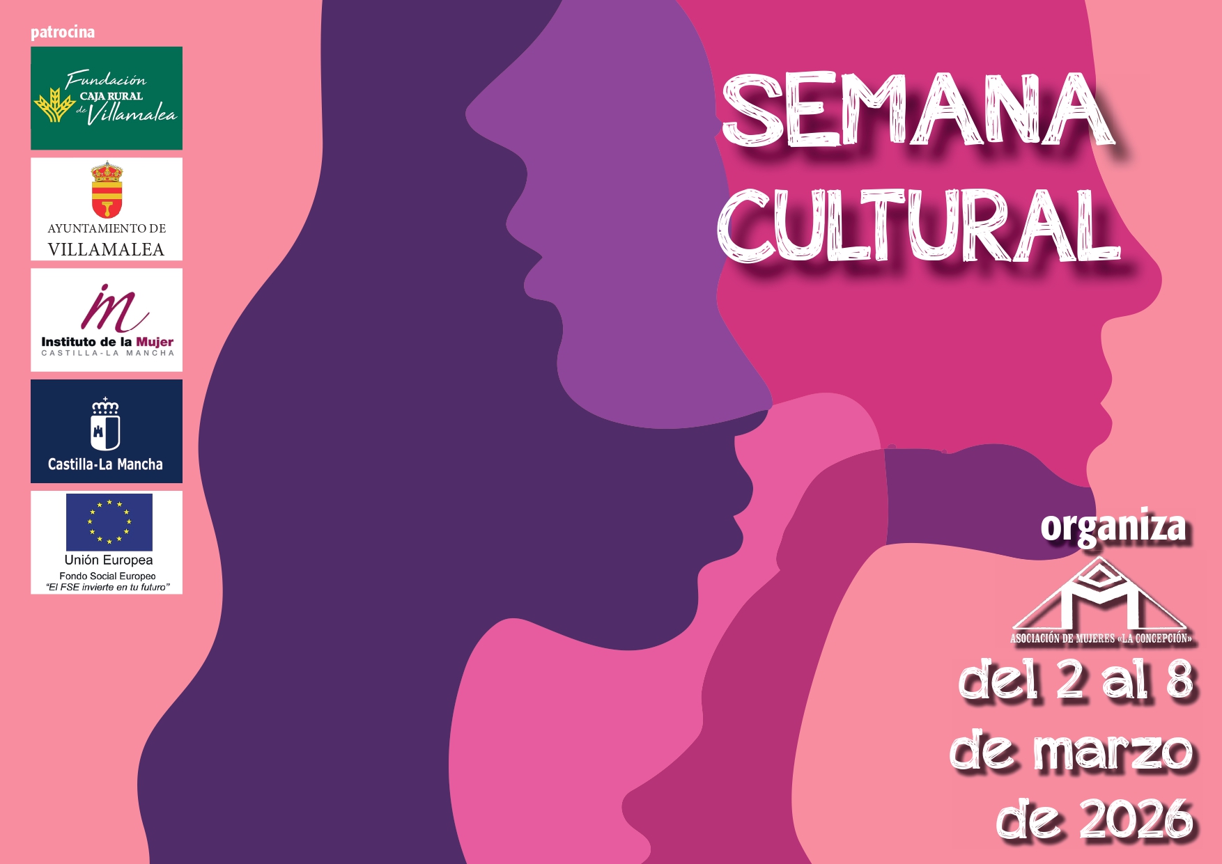 Semana Cultural con motivo del Dia de La Mujer, organizado por la Asociación de Mujeres "La Concepción", del 2 al 8 de Marzo de 2026, se adjunta el díptico con las actividades que se realizarán.