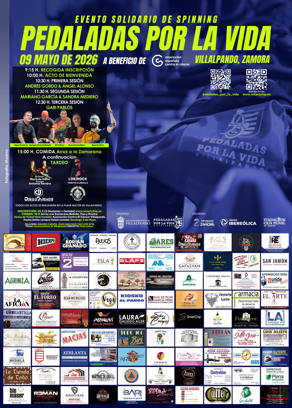 9 de mayo de 2026 vuelve Pedaladas por la Vida. Evento solidario de Spinning a beneficio de la Asociación Española Contra el Cáncer.