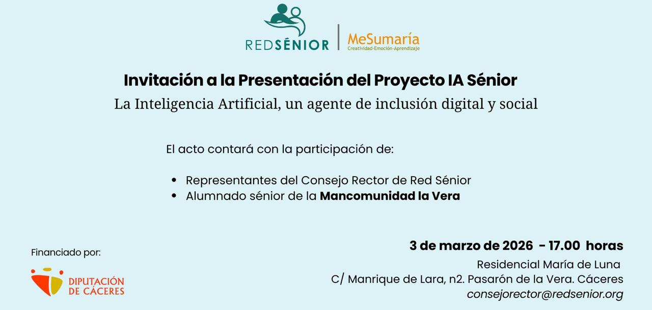 Mañana martes a las 17h en el salón de actos municipal de presentarán los talleres sobre inteligencia artificial desarrollados en el marcó del Proyecto IA Senior, en el que han participado casi 60 mayores pertenecientes a distintas asociaciones de la comarca de la Vera.