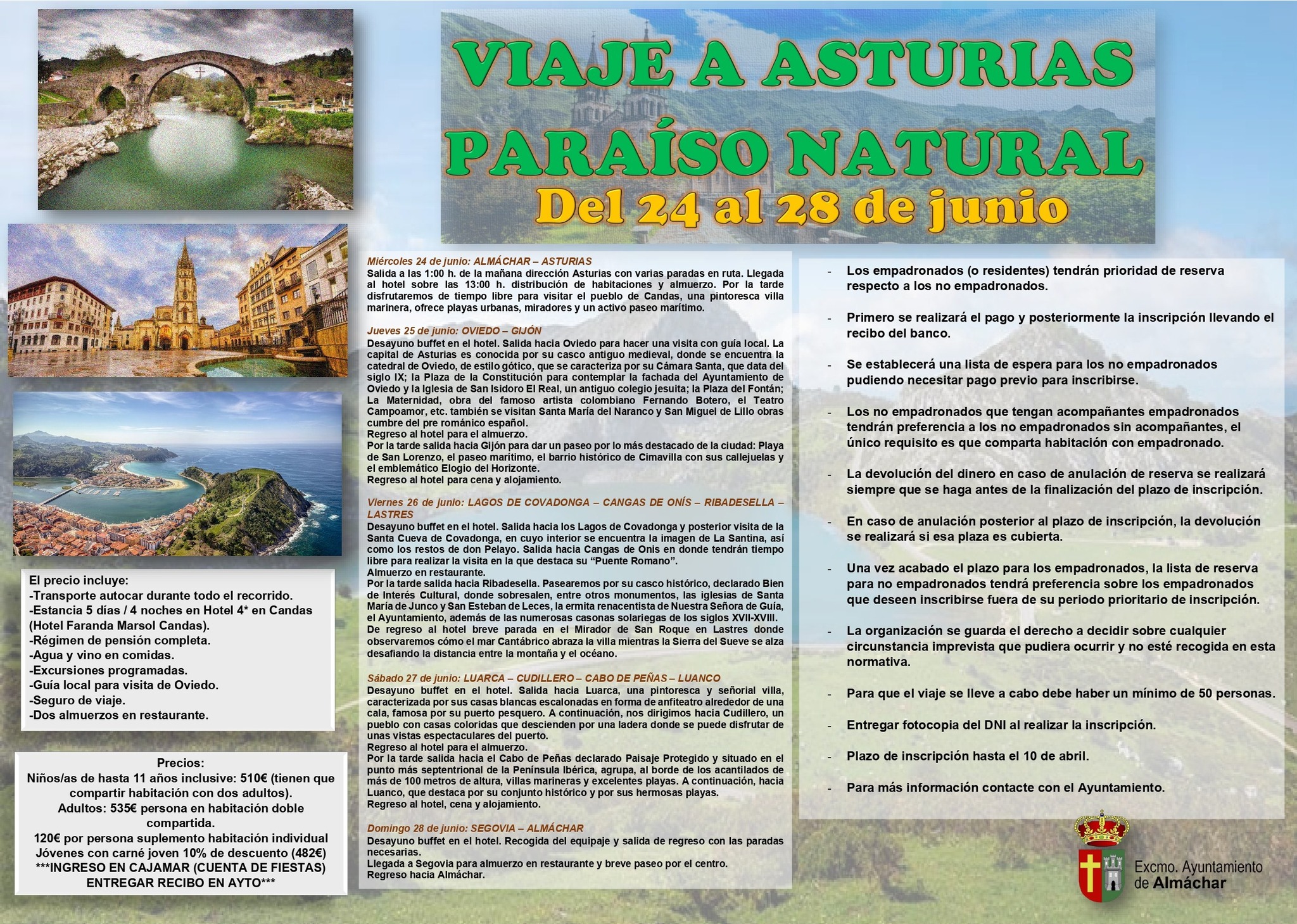 Hotel 4* Candás pensión completa 🍴, bus, guías, seguro 🛡️