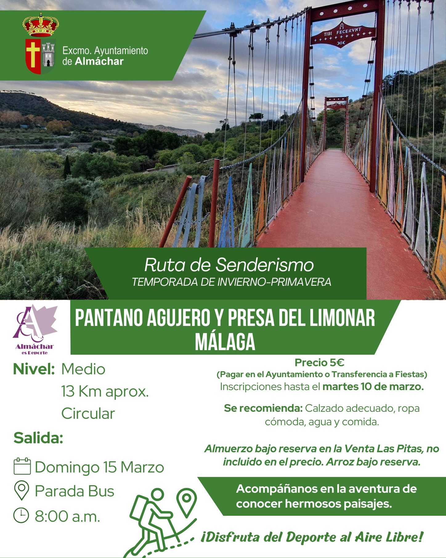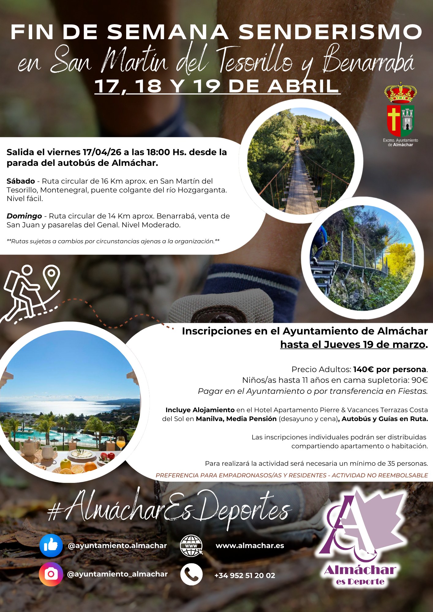 🌿🥾✨ ¡Llega la temporada perfecta para salir a la montaña y disfrutar! 🌞 Os dejamos las próximas actividades que hemos preparado desde el Ayuntamiento. Plazas limitadas y prioridad para empadronados/as 💪 ¡No lo dejéis para el final e inscribíos ya en el Ayto! 📝