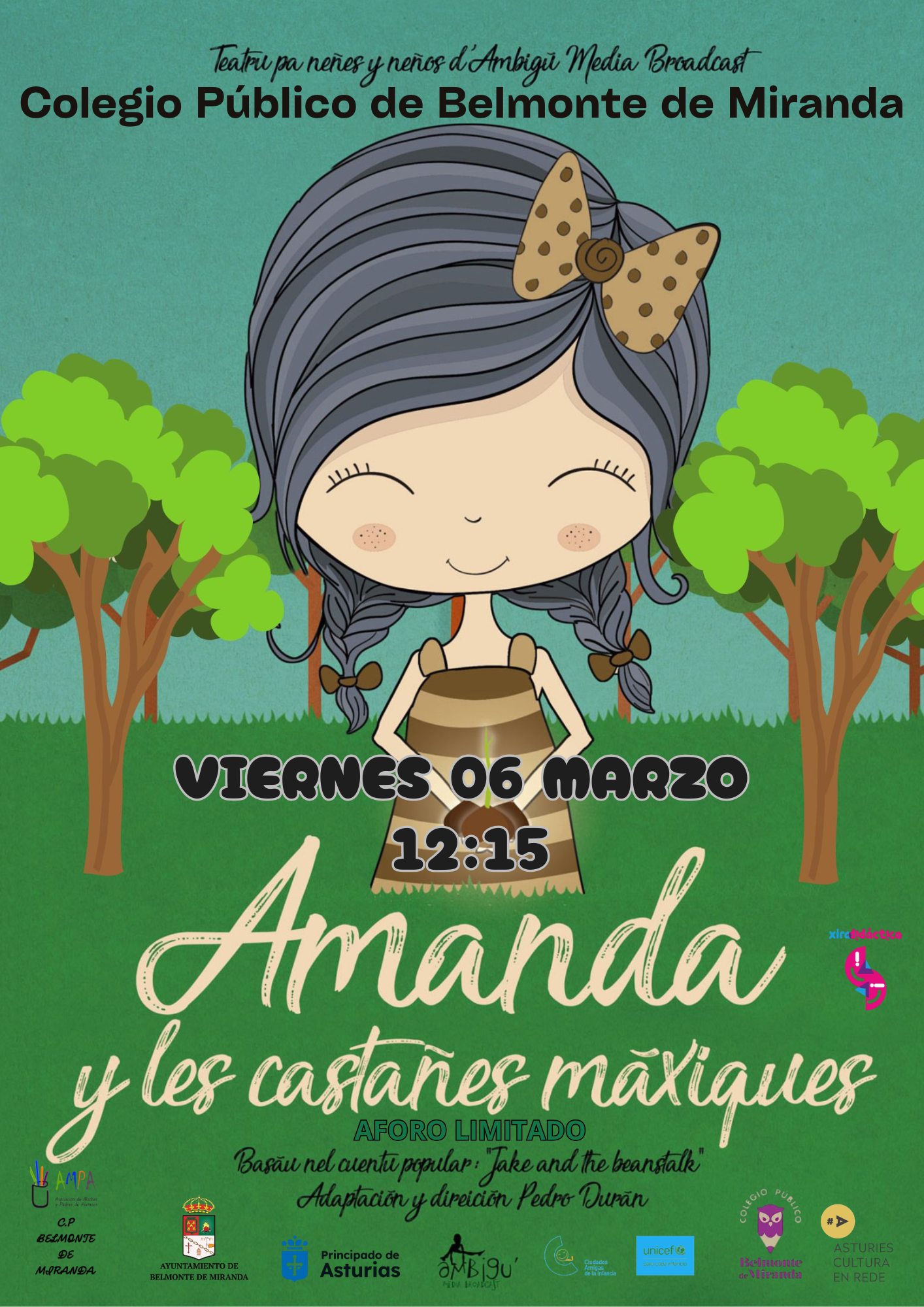 Se trata de “Amanda y les castañes máxiques”, una adaptación basada en el cuento popular “Jake and the Beanstalk”, con adaptación y dirección de Pedro Durán. La propuesta busca acercar a las niñas y niños a un mundo mágico lleno de imaginación, valores y aventura.