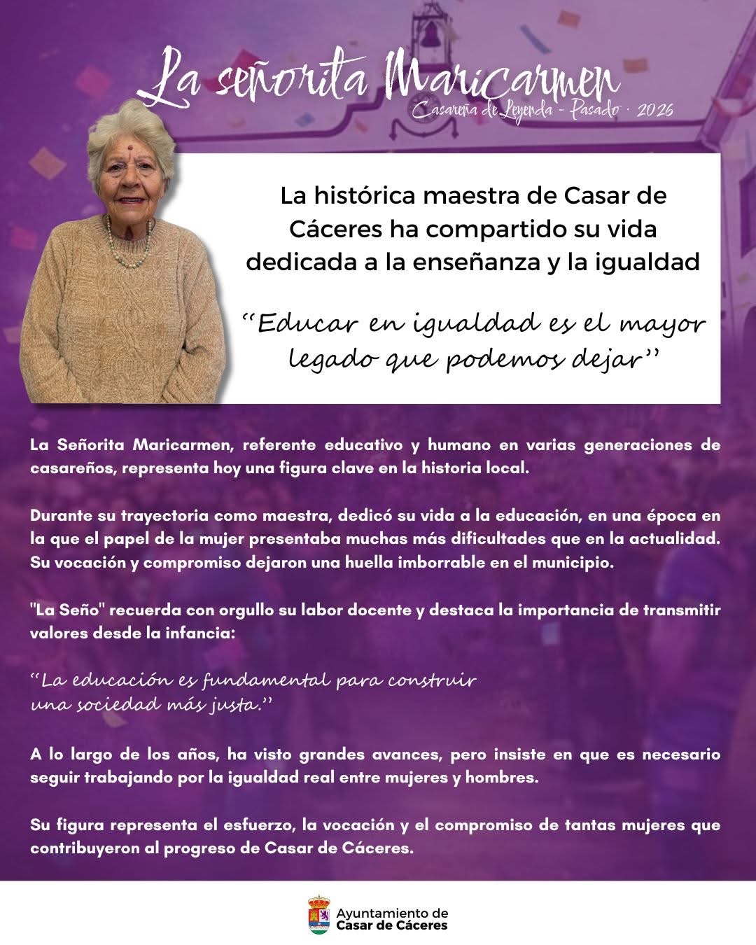Casareñas de Leyenda 2026 (Modalidad Pasado) 🔝💥La señorita Maricarmen: histórica maestra de nuestro pueblo... ¡Te contamos quién es! #casardecaceres #8M