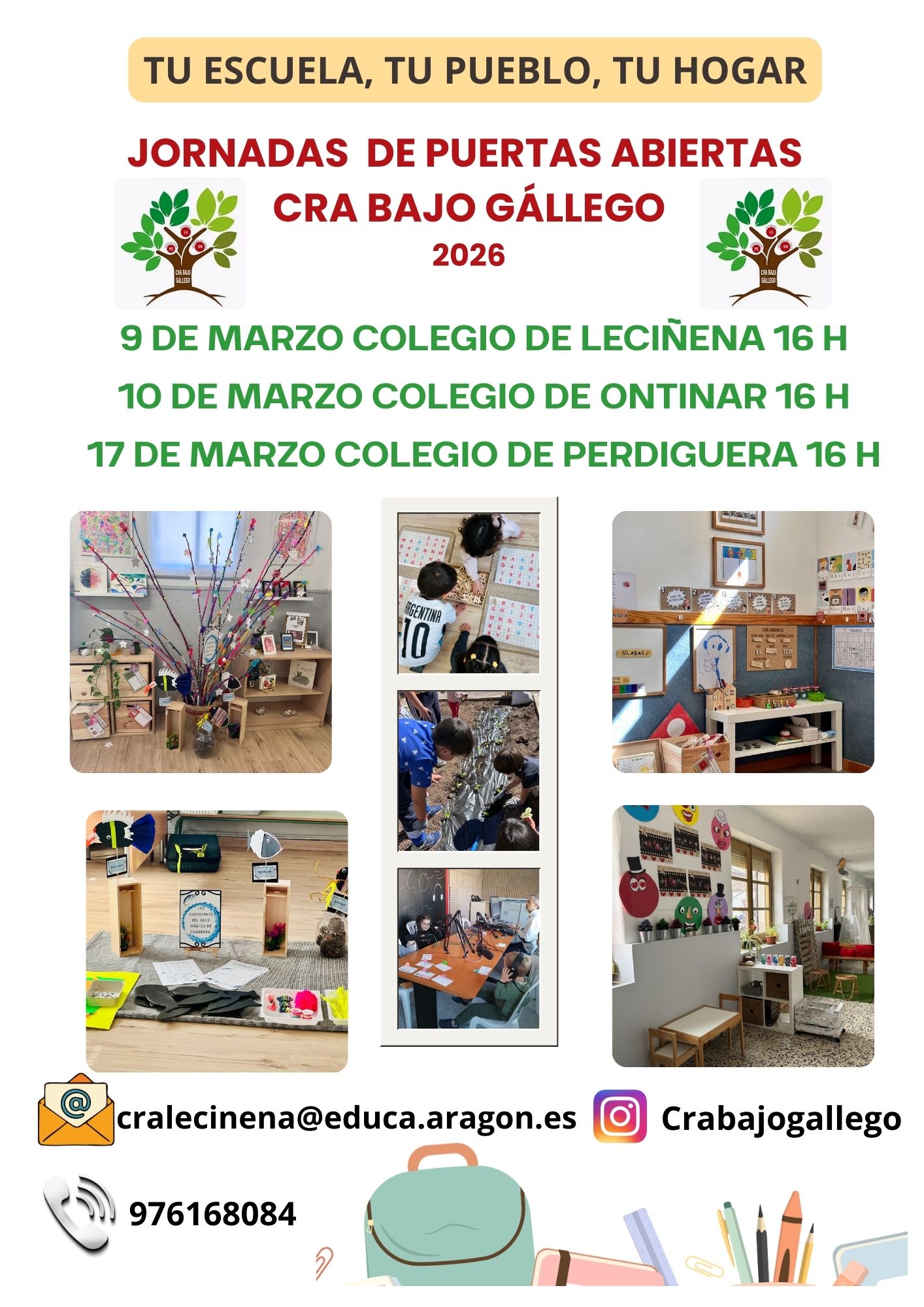 Se informa a toda la población que el CRA Bajo Gállego celebrará sus Jornadas de Puertas Abiertas 2026, “Tu escuela, tu pueblo, tu hogar”: