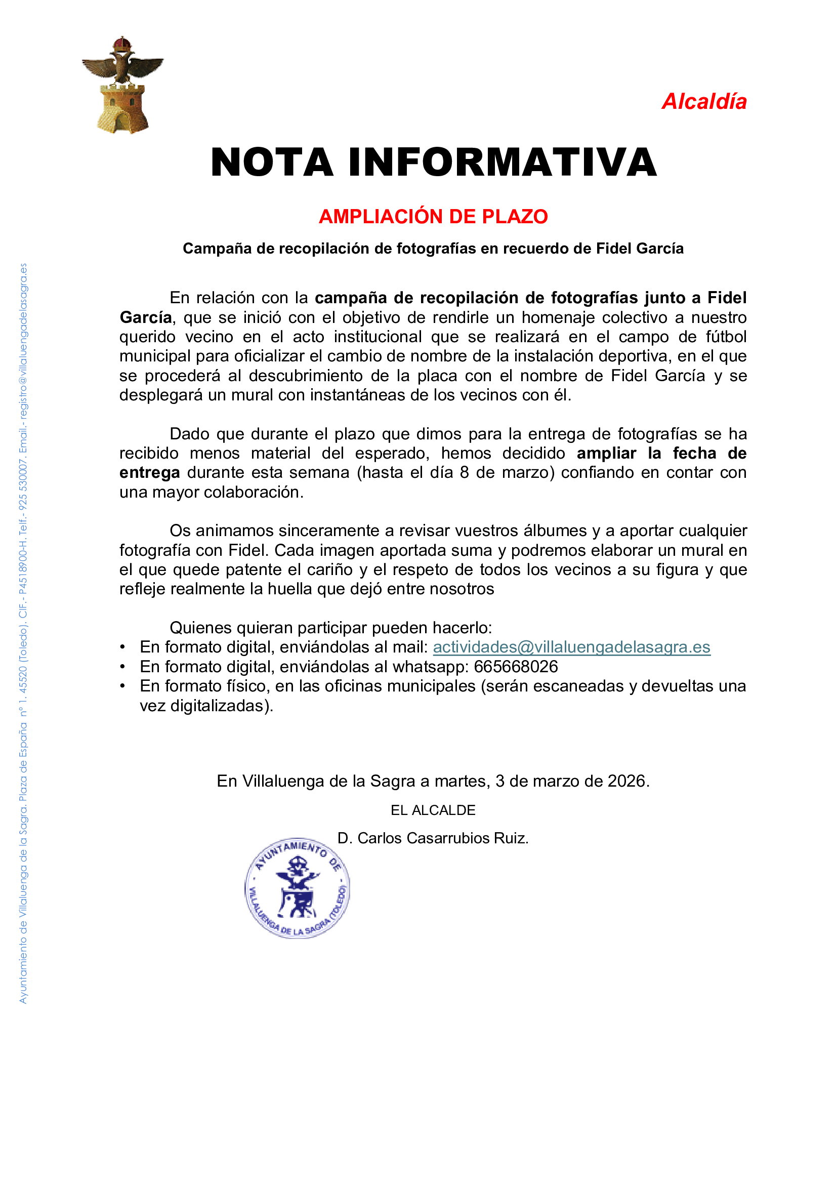 • En formato digital, enviándolas al mail: actividades@villaluengadelasagra.es