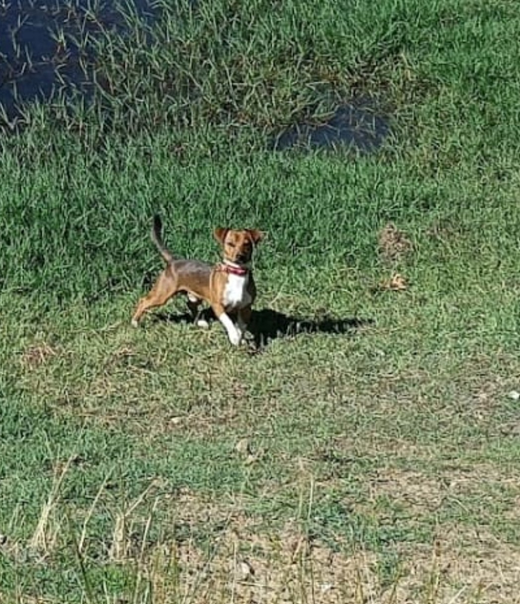 Es una mezcla de fox terrier y podenco, de color marrón (café con leche) con una mancha blanca del cuello hacía abajo. Responde al nombre de Koty.