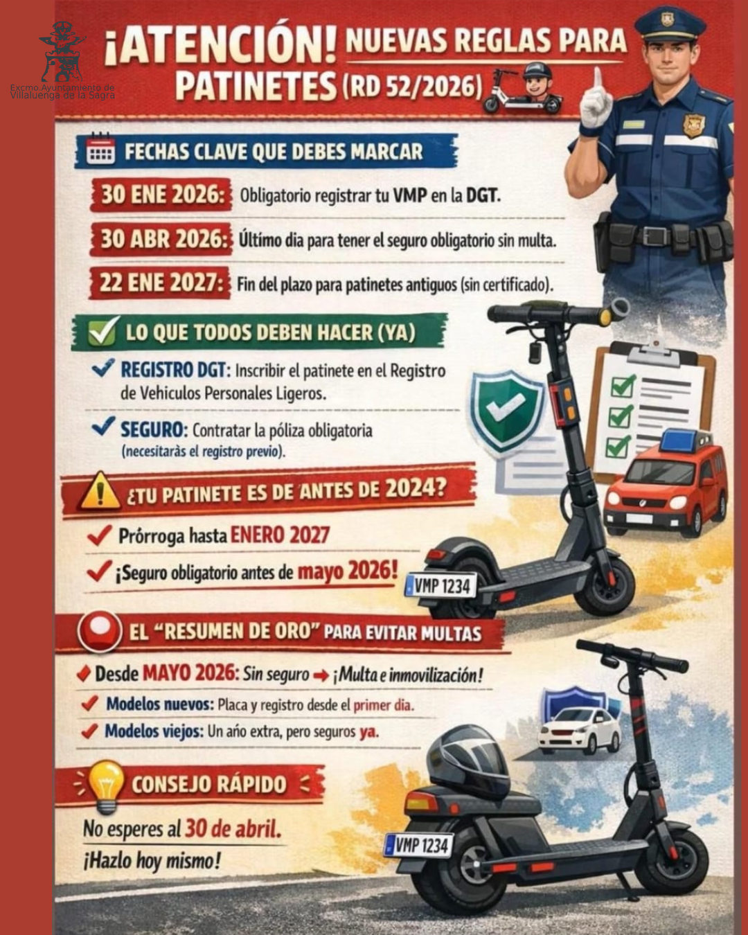 #VillaluengadelaSagra #AyuntamientodeVillaluengadelaSagra #SeguridadVial #Patinetes #VMP #DGT #MovilidadSegura #ConvivenciaVial #NormativaVial