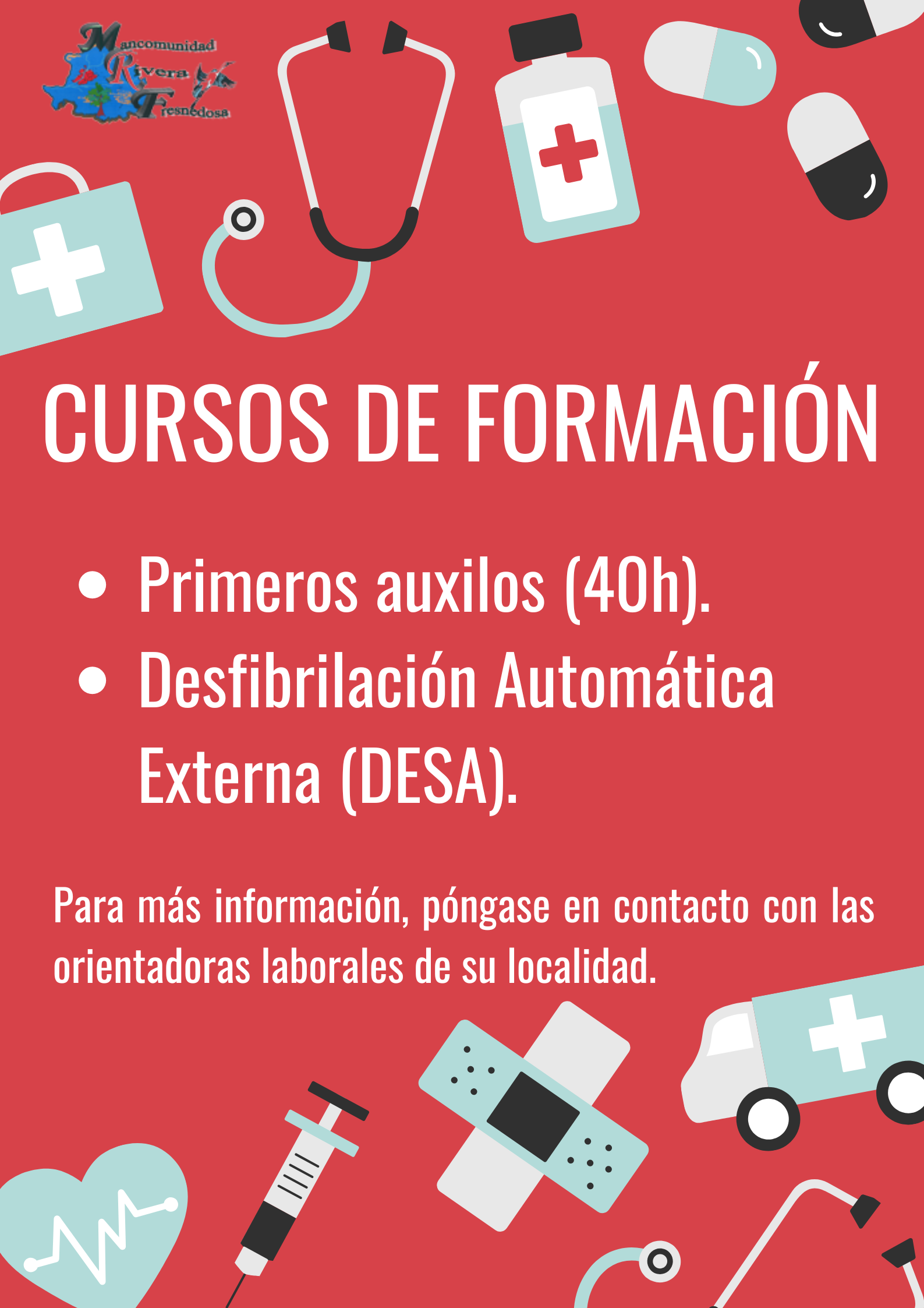 🚑-Primeros auxilios(40h)🆘-Desfibrilación Automática Externa(DESA)🗓️Para más información, póngase en contacto con las orientadoras laborales de su localidad los jueves en el ayuntamiento.