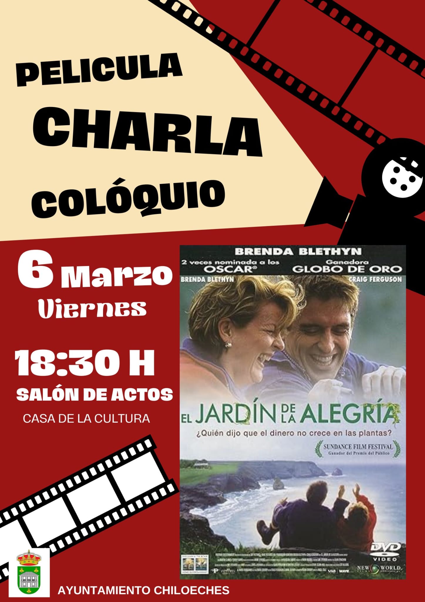 🍿 Disfrutaremos de la proyección de la película "El Jardín de la Alegría", una comedia británica llena de ingenio, seguida de una 🗣️ charla-coloquio donde podremos compartir impresiones y pasar un buen rato juntos.