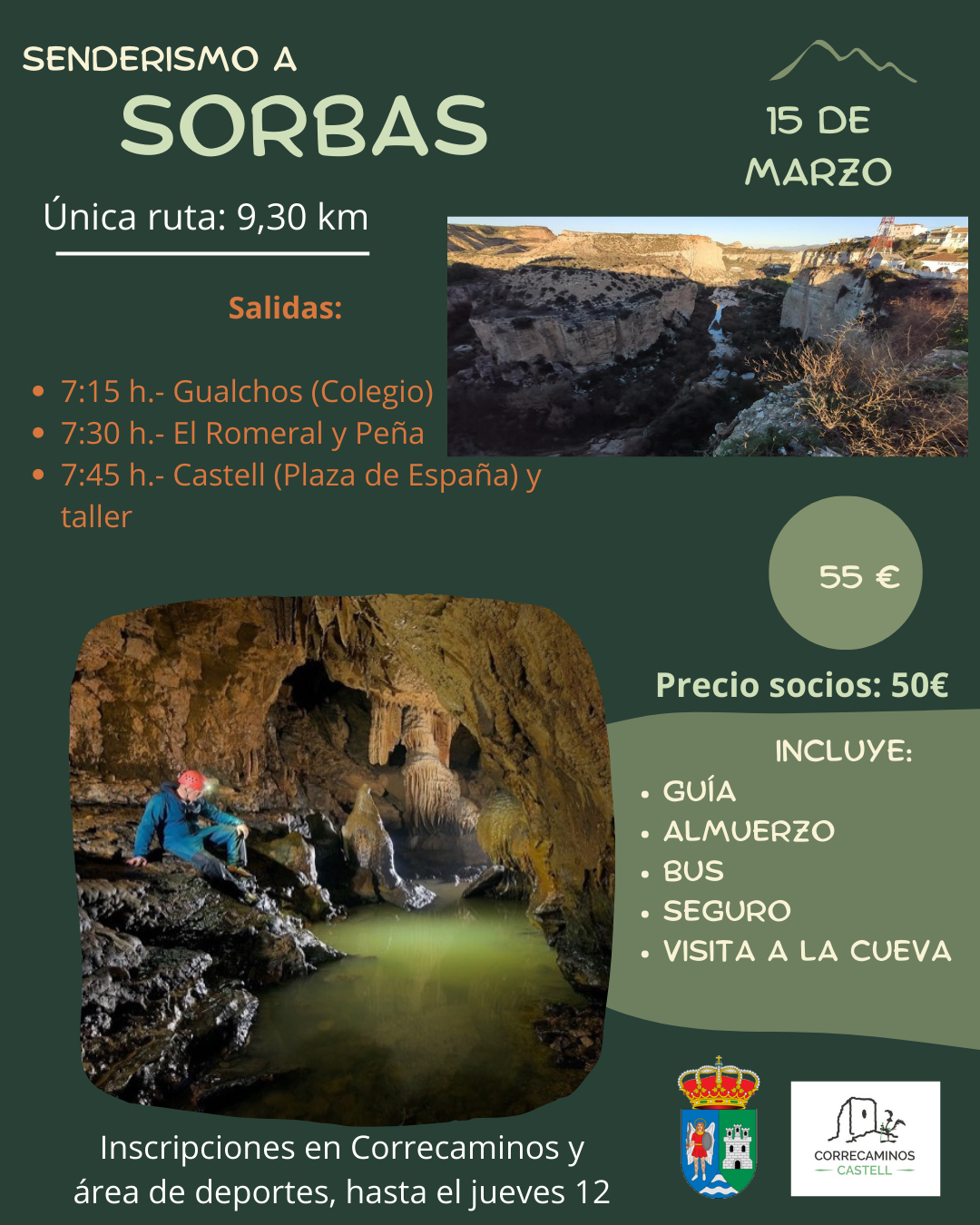 El precio son 55€ para no socios, y 50€ para los socios de la Asociación senderista correcaminos Castell