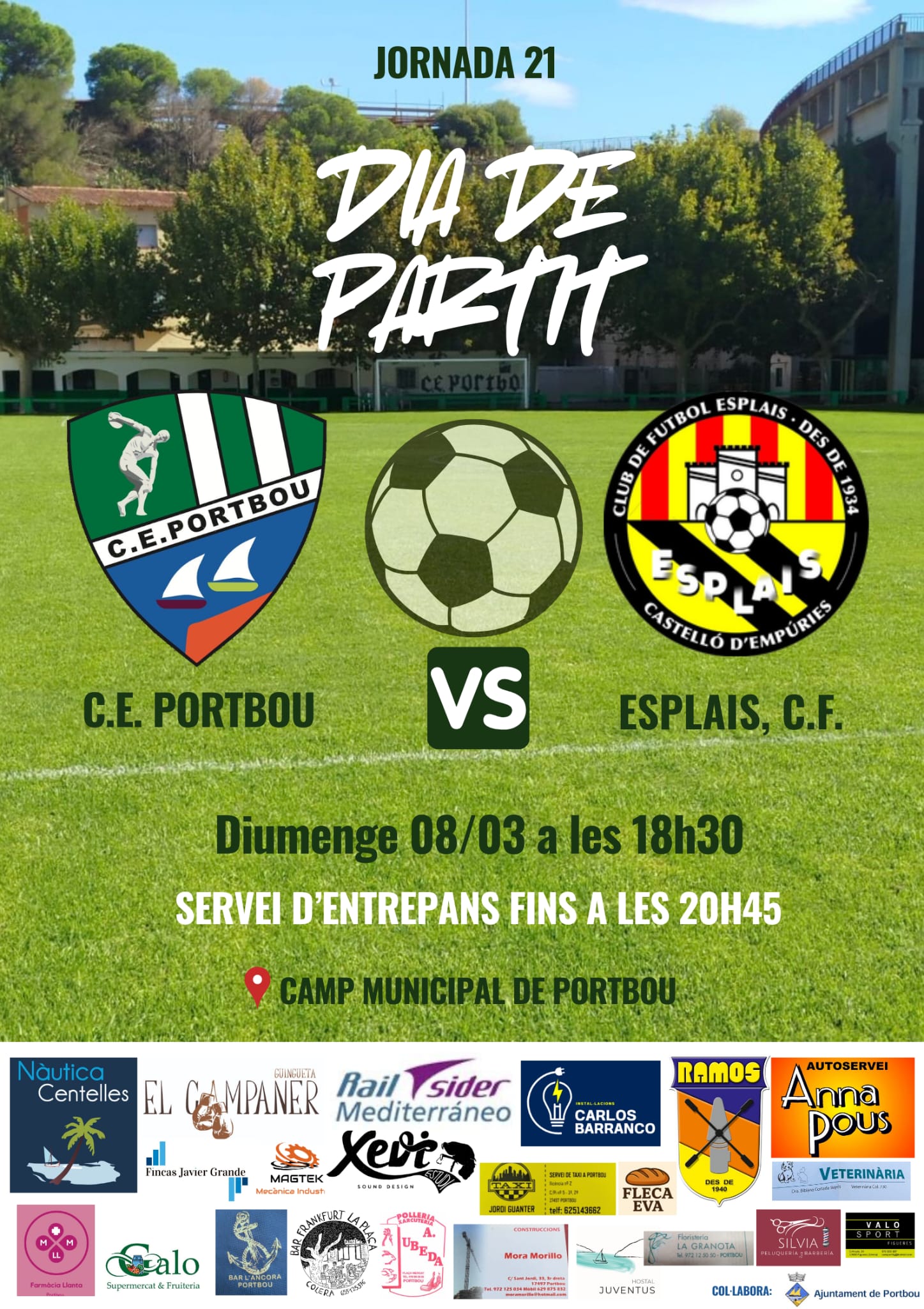 El C.E. Portbou s’enfronta al Esplais C.F. Vine a animar l’equip i gaudir d’una bona tarda de futbol amb l’afició! 🙌⚽️