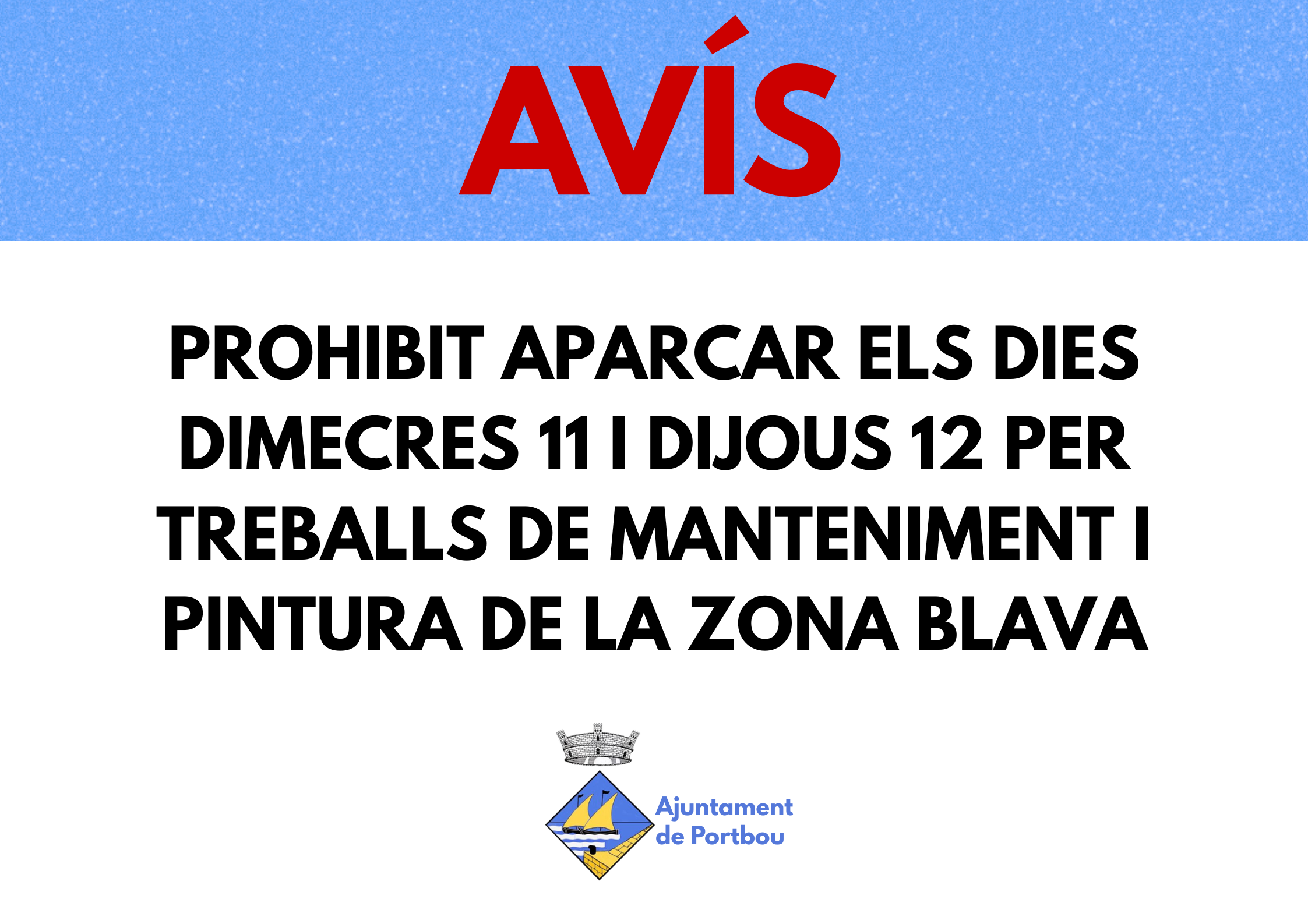 Es comunica que els dies dimecres 11 i dijous 12 quedarà prohibit aparcar en la zona blava entre el Restaurant Riky i el Restaurant Voramar a causa de treballs de manteniment i repintat de la zona blava.