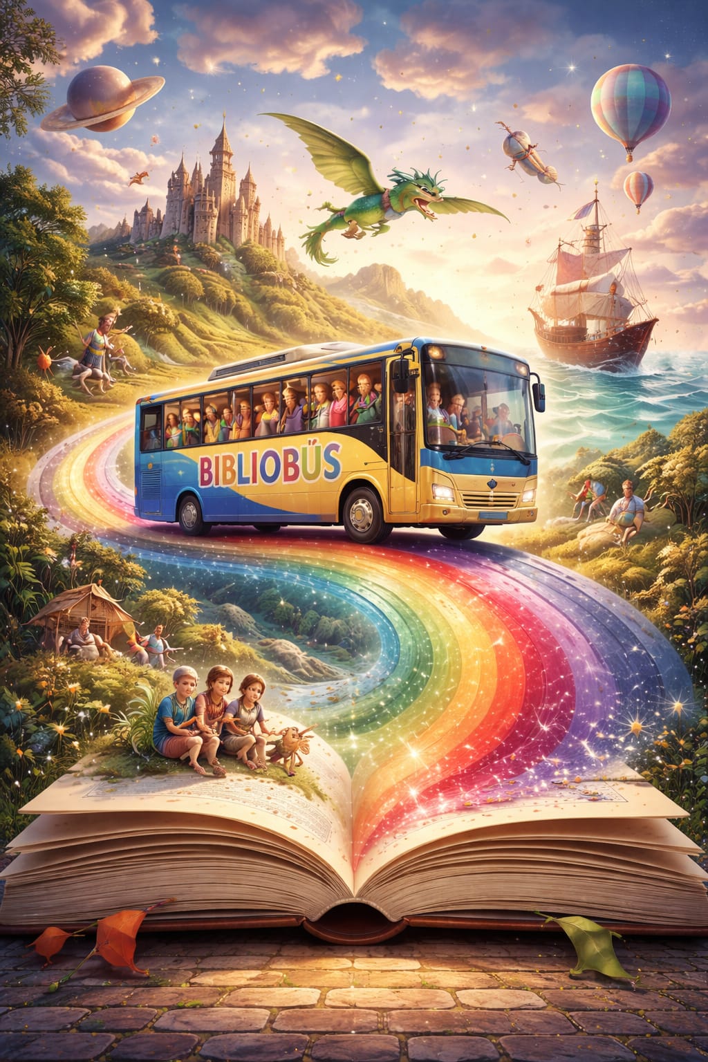 Un autobús lleno de historias, aventuras, misterios, risas, dragones, princesas, viajes imposibles y mundos por descubrir.
