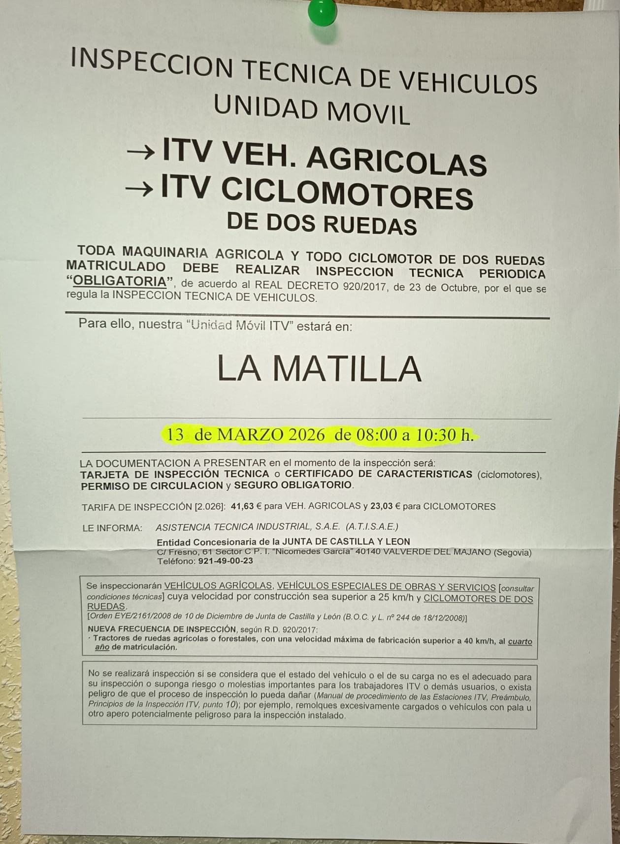 🚛 Después de su paso por La Matilla, la unidad móvil se desplazará al municipio vecino de Valleruela de Pedraza, donde prestará servicio en horario de 11:00 a 13:00, por si algún vecino prefiere acudir allí.