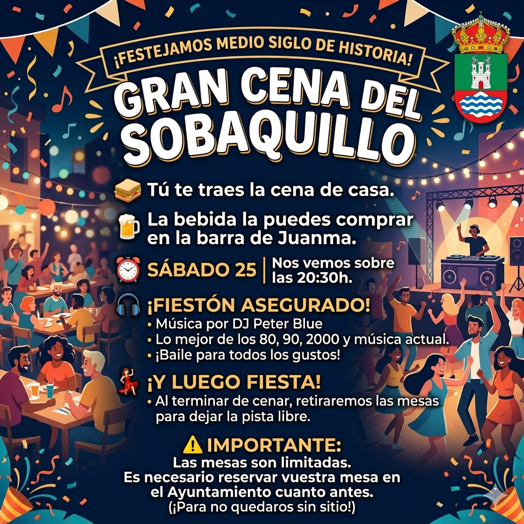 Celebramos medio siglo de historia y queremos que seas parte de este fiestón. El plan es sencillo: tú traes la cena de casa y nosotros ponemos la música, el baile y el mejor ambiente.