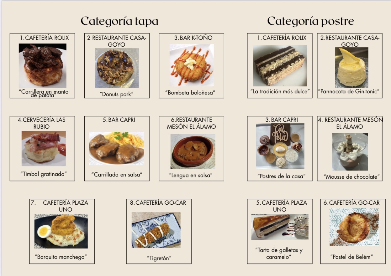 👉 Recorre los bares y restaurantes, prueba sus tapas y postres especiales, vota tus favoritos y disfruta del mejor ambiente gastronómico de nuestro pueblo .