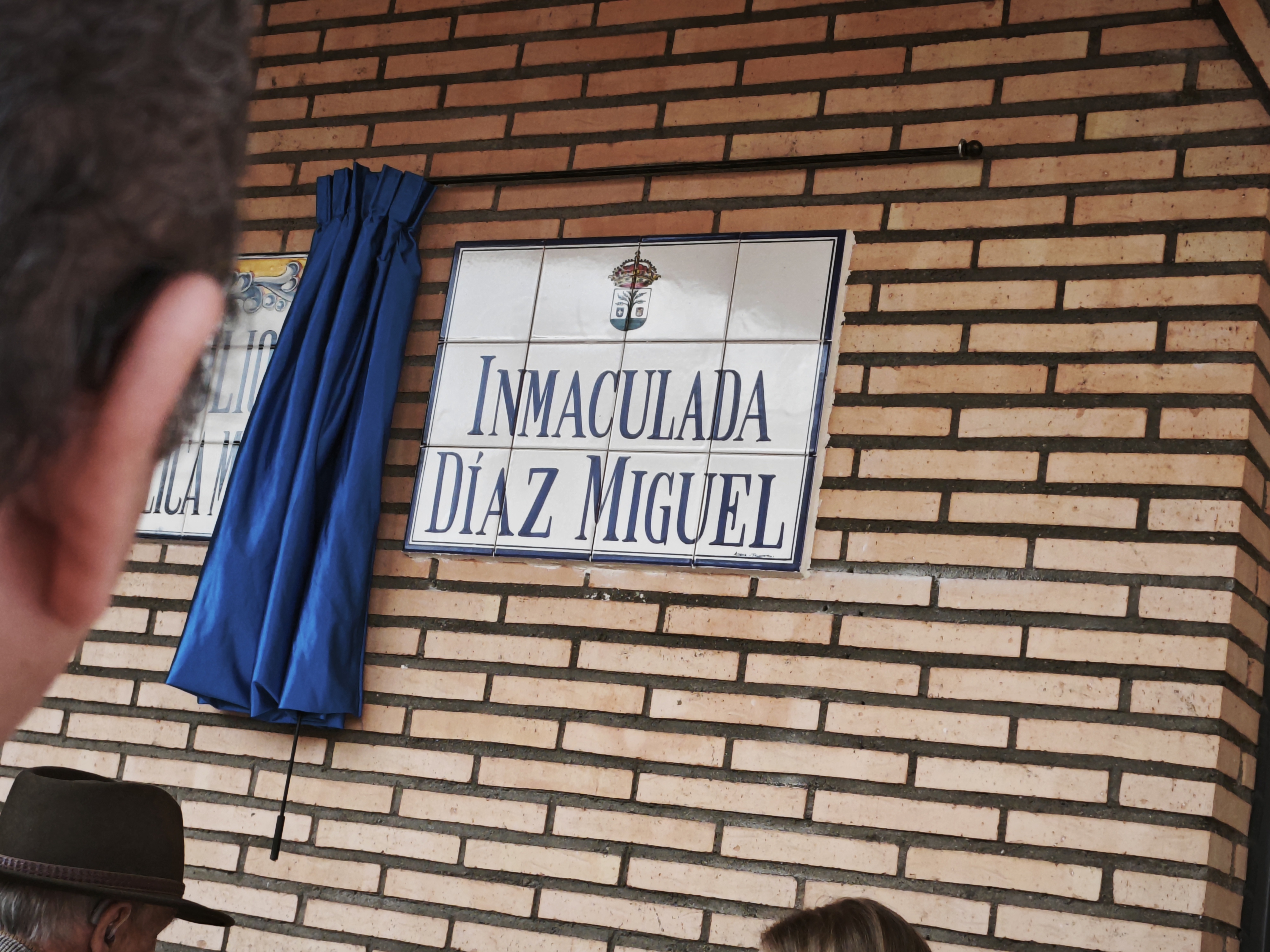 SE LLEVÓ A CABO UN ACTO MUY EMOTIVO, CON LA PRESENCIA DE SU PADRE, HIJOS, HERMANOS Y RESTO DE LA FAMILIA ,AMIGOS Y LA CORPORACIÓN MUNICIPAL, ENCABEZADO POR SU ALCALDE D. JOSÉ IGNACIO DÍAZ MAGAÑA, EN EL QUE SE DESCUBRIÓ UNA PLACA CON EL NOMBRE DE MACU, NUESTRA QUERIDA E ILUSTRE VECINA.