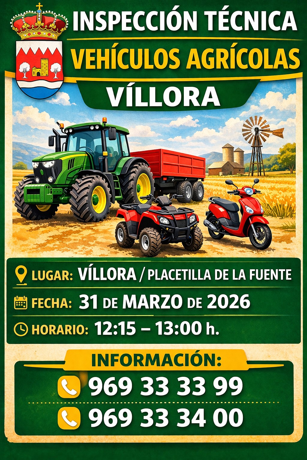 Se informa a los vecinos que se realizará la inspección técnica de vehículos agrícolas (tractores, maquinaria agrícola, quads y ciclomotores).