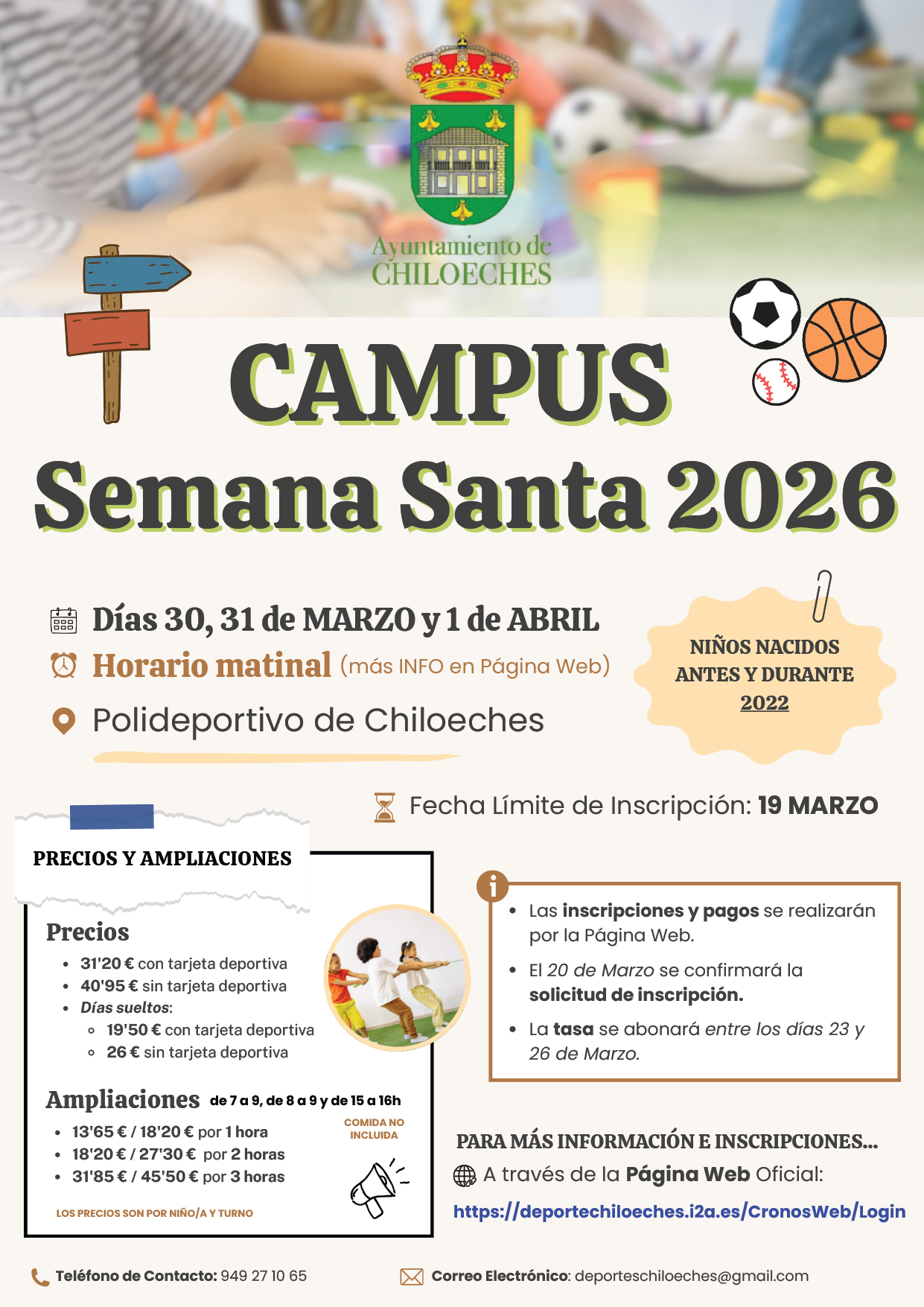 ℹ Más información en: https://chiloeches.es/apuntate-ya-al-campus-de-semana-santa-2026/