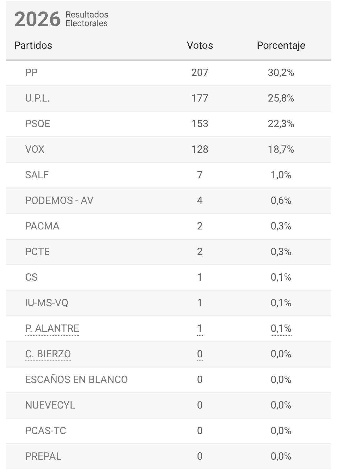 Resultado oficial de las Elecciones Autonómicas de Castilla y León 2026 en Laguna de Negrillos