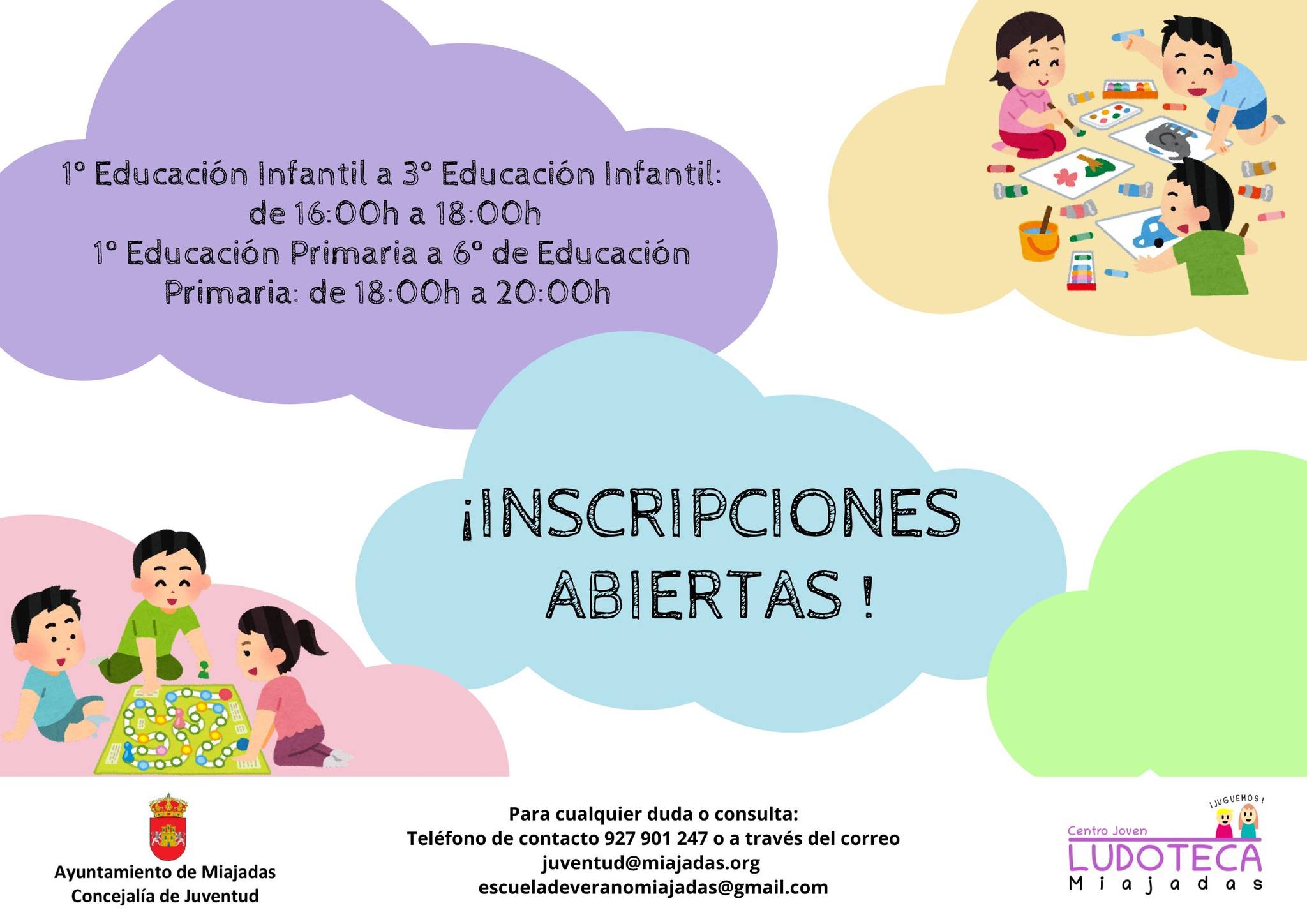 -Niños de 6 a 11 años (desde 1º de Educación Primaria hasta 6º de Educación Primaria). Horario: de lunes a viernes de 18:00h a 20:00 horas. https://forms.gle/uCCu5d7Y5C1qEgBD9