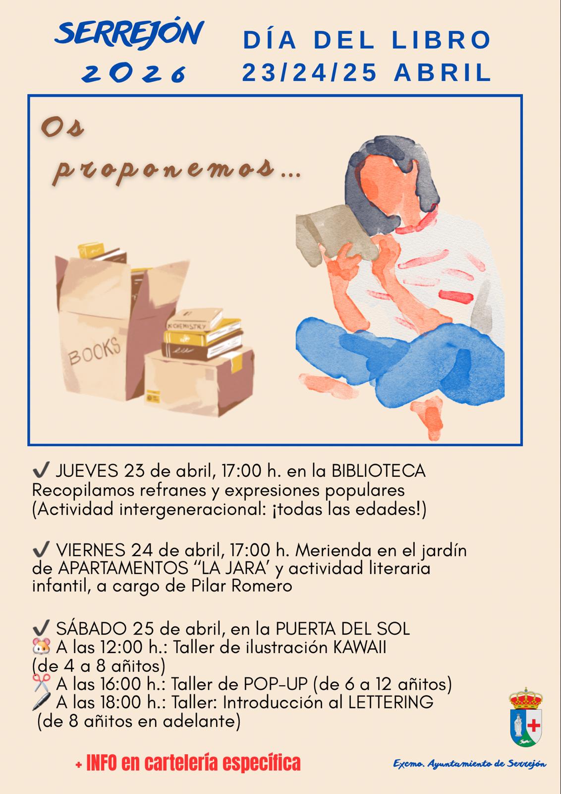 Se adjunta programa de actividades a desarrollar con motivo del Día del Libro, así como cartelería especifica de los talleres que se celebrarán durante el sábado día 25 de abril.