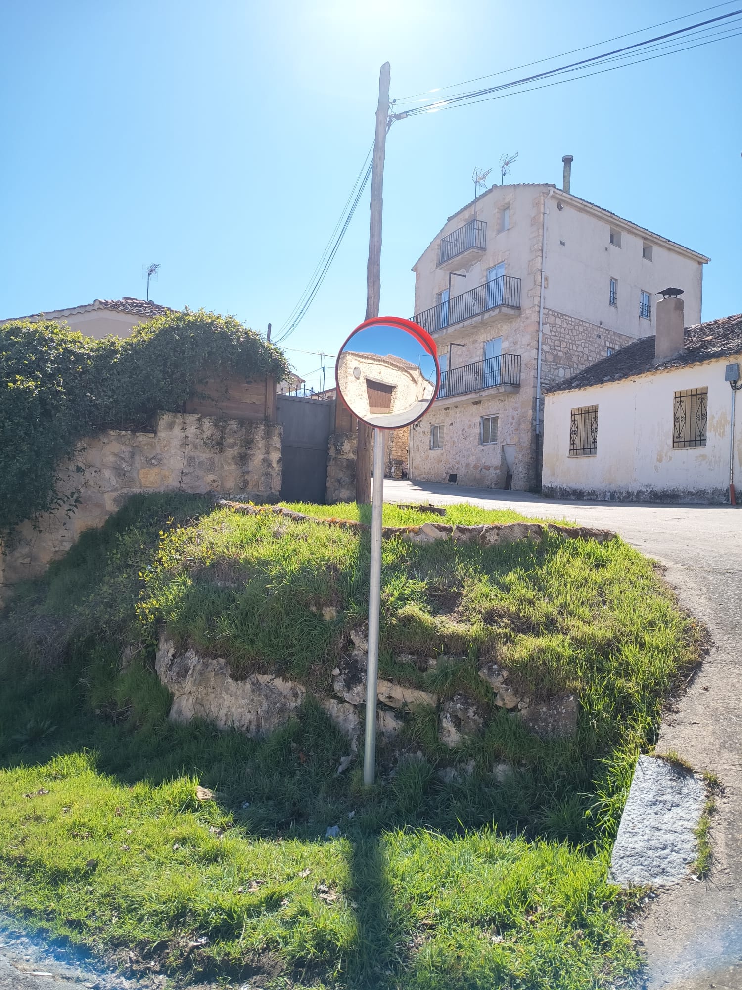 Hoy se ha repuesto el espejo de tráfico en el cruce de calle Sol con la carretera de Segovia, con el fin de mejorar la visibilidad y aumentar la seguridad vial en este punto.