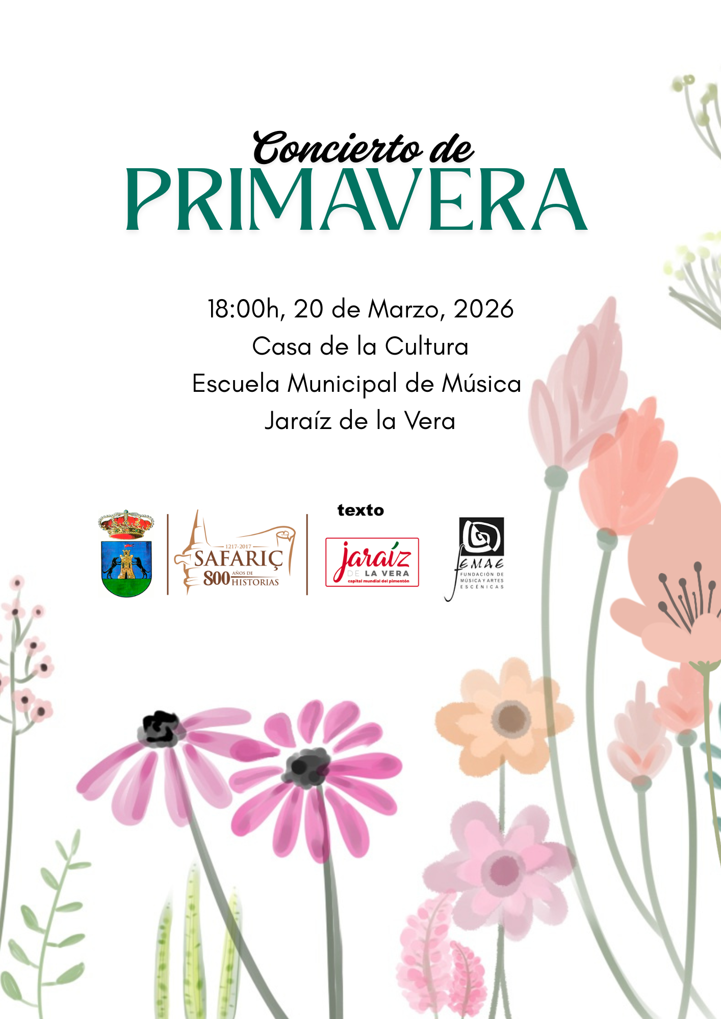 🎼🌸Concierto de primavera de la Escuela de Música de Jaraíz de la Vera🌼🎶Este viernes 20 de marzo a las 18:00h en la Casa de la Cultura