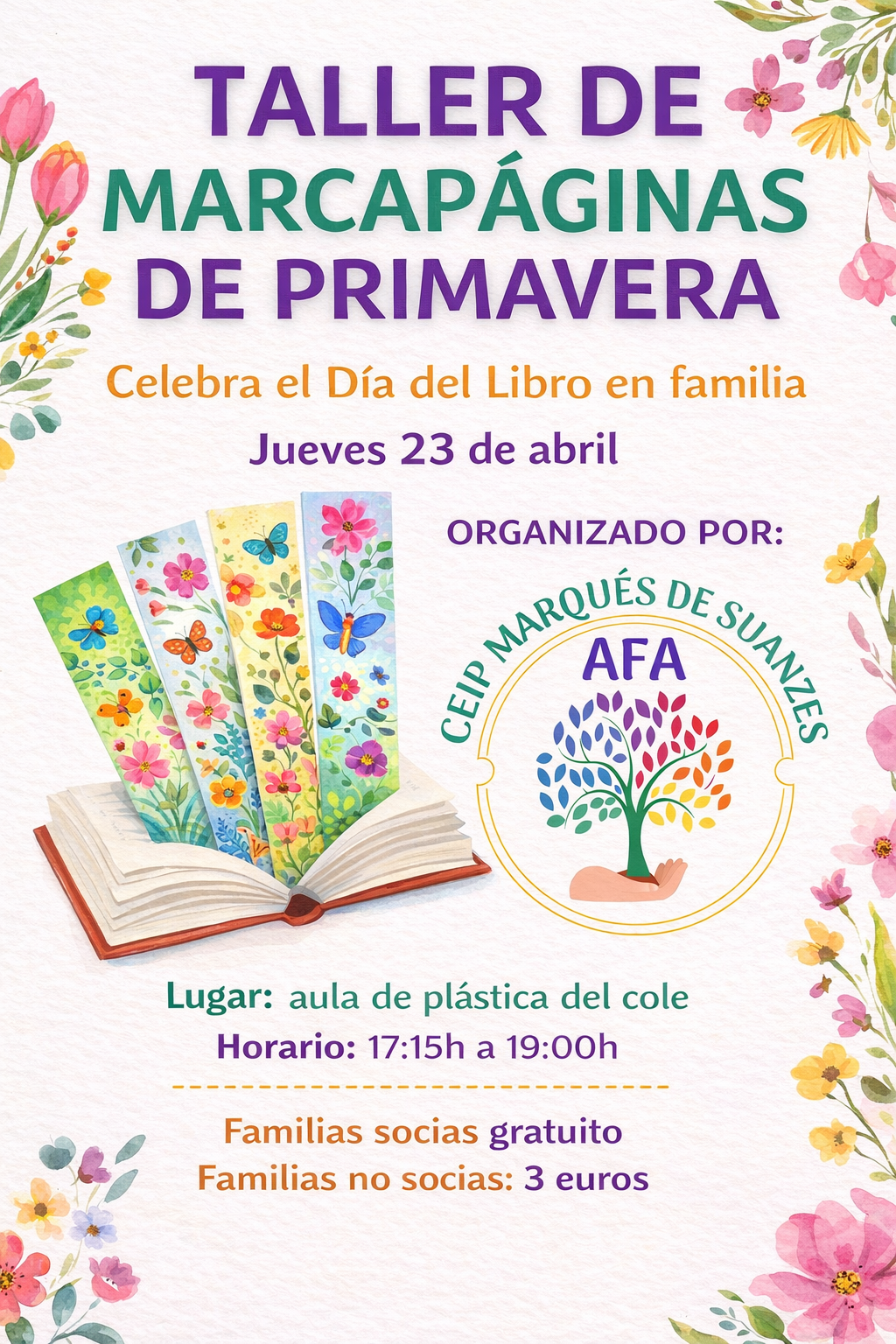 Ven a pasar una tarde creativa en familia y crea marcapáginas primaverales únicos para acompañar tus lecturas favoritas.