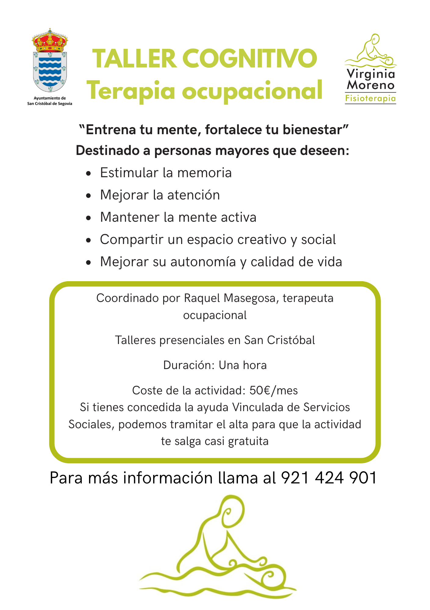 El Ayuntamiento de San Cristóbal de Segovia, en colaboración con Virginia Moreno Fisioterapia, pone en marcha un proyecto novedoso dirigido a personas con deterioro cognitivo. Se desarrollarán grupos de intervención con sesiones de terapia ocupacional y logopedia, diseñadas para estimular capacidades, favorecer la autonomía y mejorar la calidad de vida.