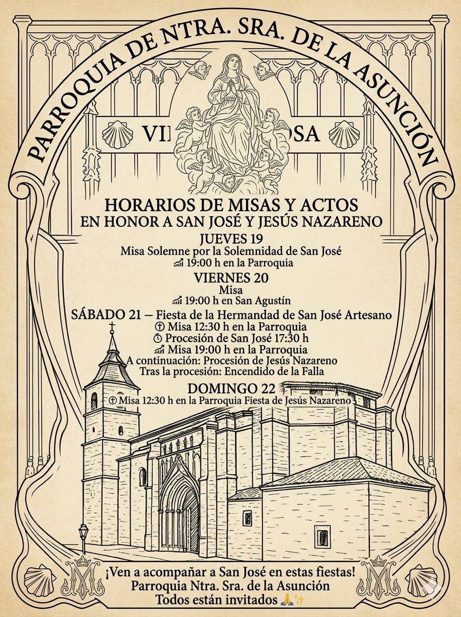 Desde la Parroquia se invita a todos los vecinos y vecinas a participar en estos actos y acompañar a San José en estas celebraciones.