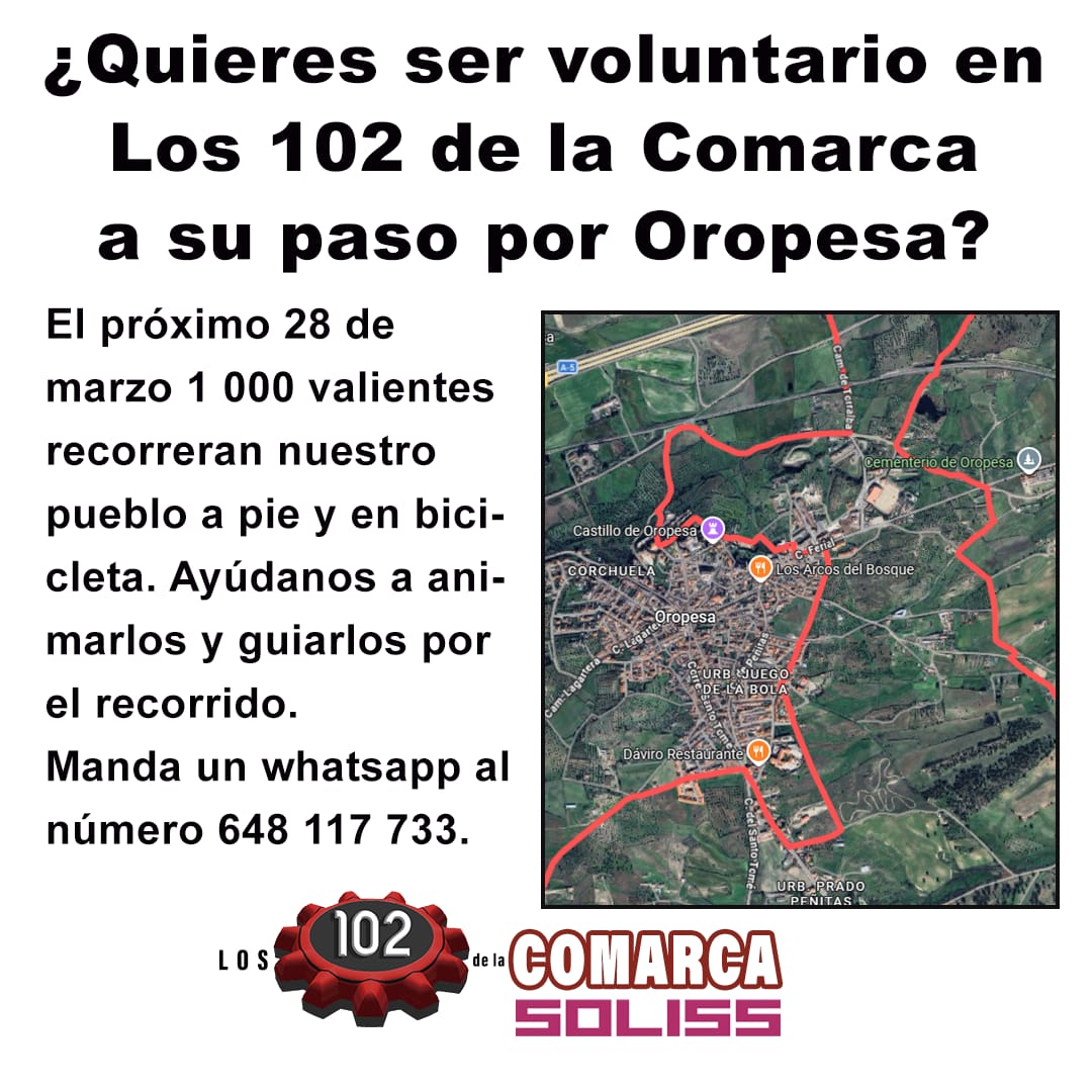 El próximo 📅 28 de Marzo 1000 valientes recorrerán nuestro pueblo a 🚶 y en 🚴♀️ ⏩Ayúdanos a animarlos 👏 y guiarlos por el recorrido. ℹ️ Manda un whatsapp al 📲 648117733