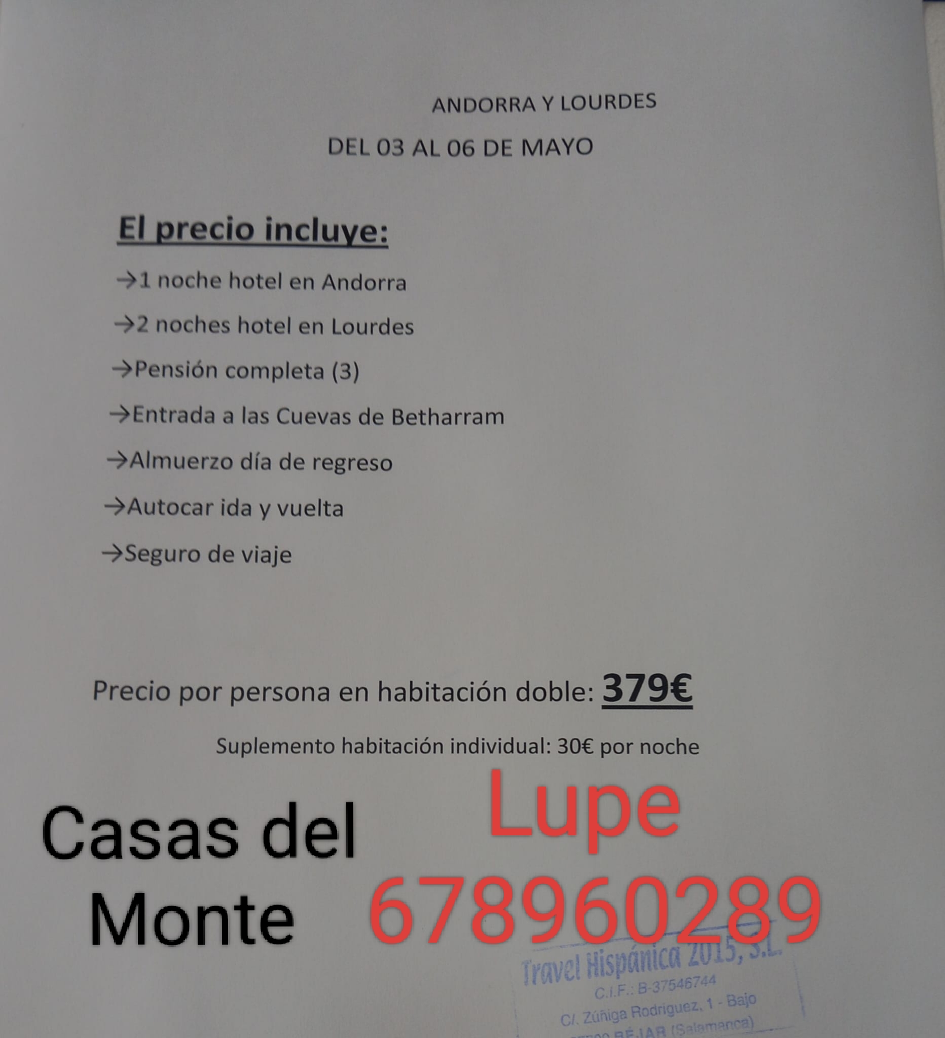 Se informa que nos han mandado esta bonita excursión para realizar entre varios municipios del Ambroz. Se parará en Andorra para hacer compras.Las personas interesadas que se pongan en contacto con Guadalupe: 678960289.