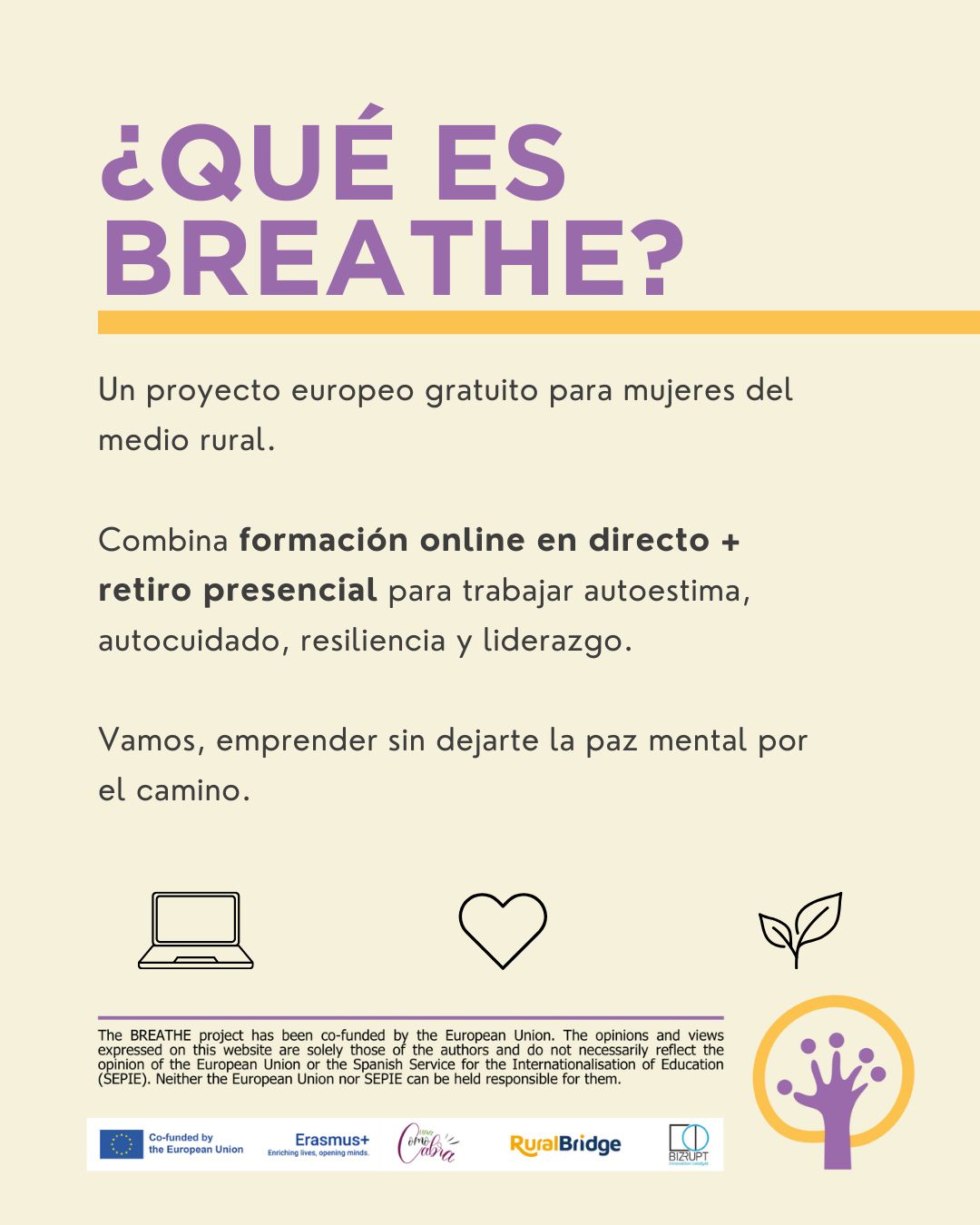 El proyecto BREATHE, cofinanciado por Erasmus+, apoya a mujeres emprendedoras, mujeres desempleadas y mujeres en transición profesional en el medio rural mediante formación online en directo (España y Grecia) y encuentros presenciales en ambos países.