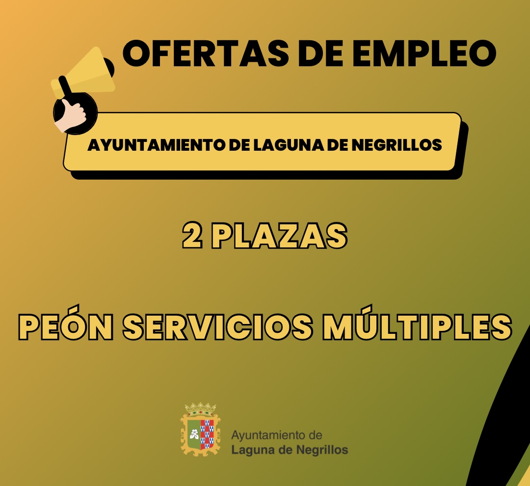 Convocadas dos plazas de Pe贸n de Servicios M煤ltiples en el Ayuntamiento de Laguna de Negrillos.