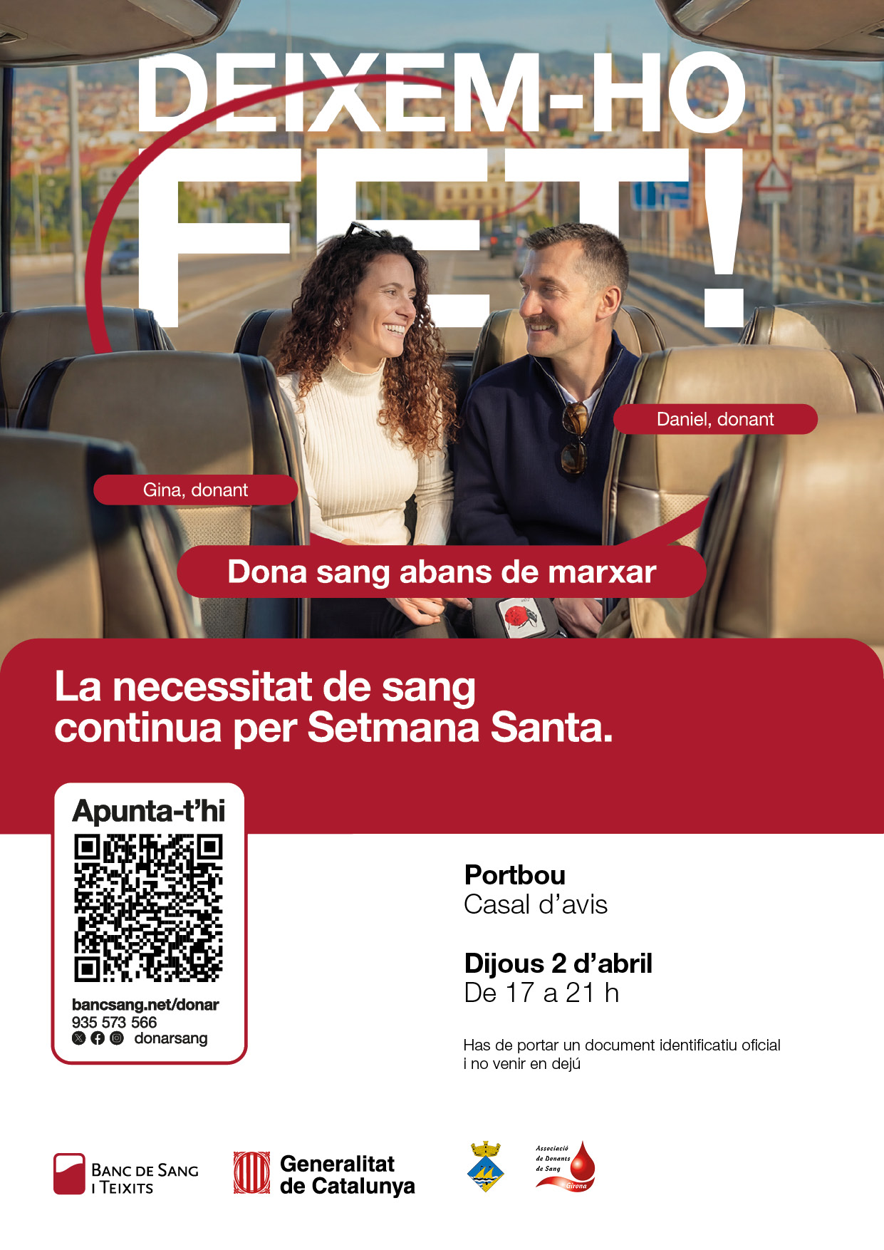 🩸 La campanya “Deixem-ho fet” anima la ciutadania a donar sang i plasma abans de Pasqua i a alternar els dos tipus de donació al llarg de l’any per garantir reserves estables.