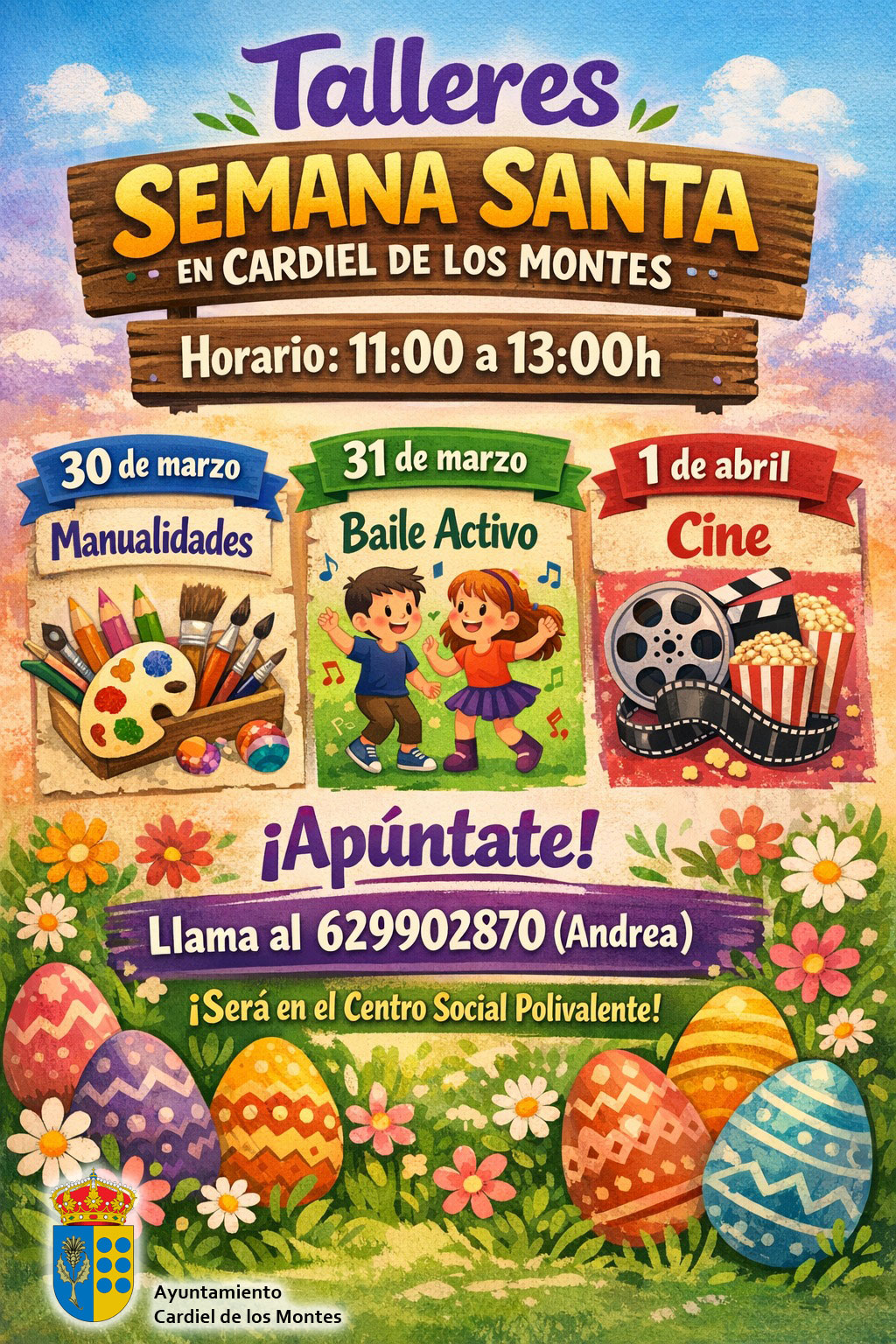 Del 30 de marzo al 1 de abril, en Cardiel de los Montes hemos preparado unos Talleres de Semana Santa súper divertidos y creativos. ¡No dejes que se queden en casa!