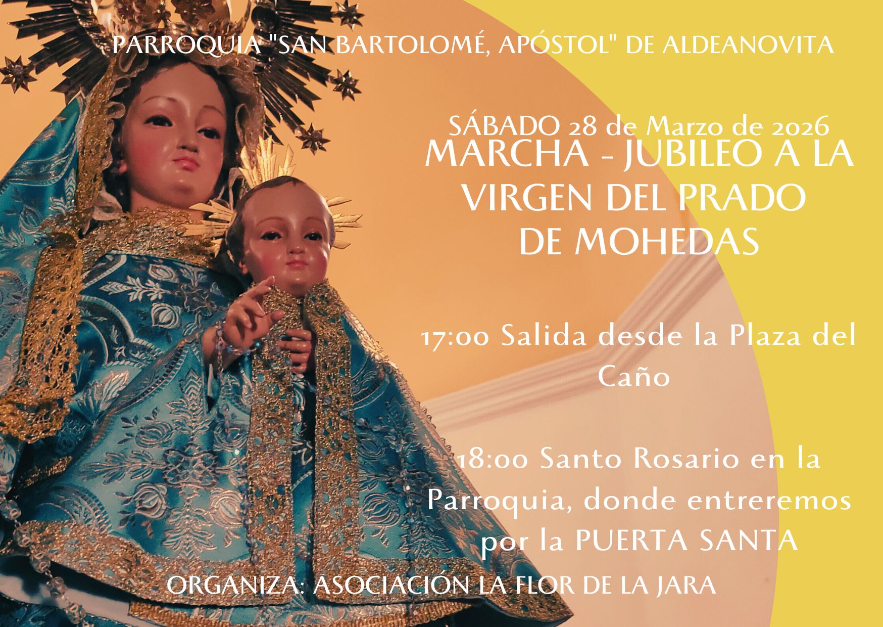 La Asociación Cultural "Flor de la Jara" junto a la Parroquia "San Bartolomé" organiza una MARCHA JUBILEO A LA VIRGEN DEL PRADO DE MOHEDAS el SÁBADO 28 de marzo.SALIDA 17:00 horas PLAZA DEL CAÑOSANTO ROSARIO 18:00 horas
