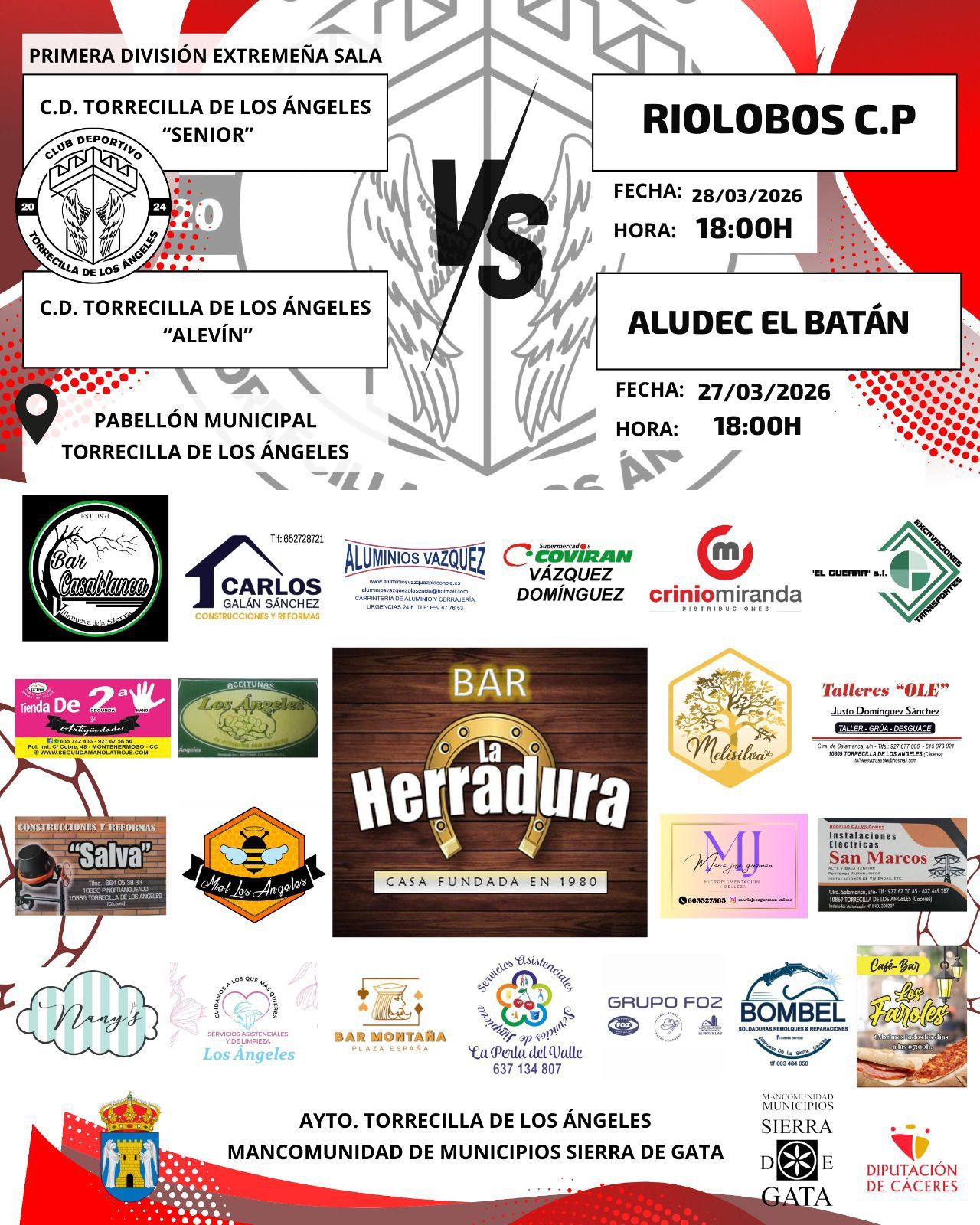 ANÍMATE A VER ESTOS PARTIDAZOS !! DIA27 DE MARZO A LAS 18:00H / TORRECILLA DE LOS ANGELES VS ALUDEC EL BATÁN DIA28 DE MARZOA LAS 18:00H / TORRECILLA DE LOS ANGELES VS RIOLOBOS NO TE LO PIERDAS!!!