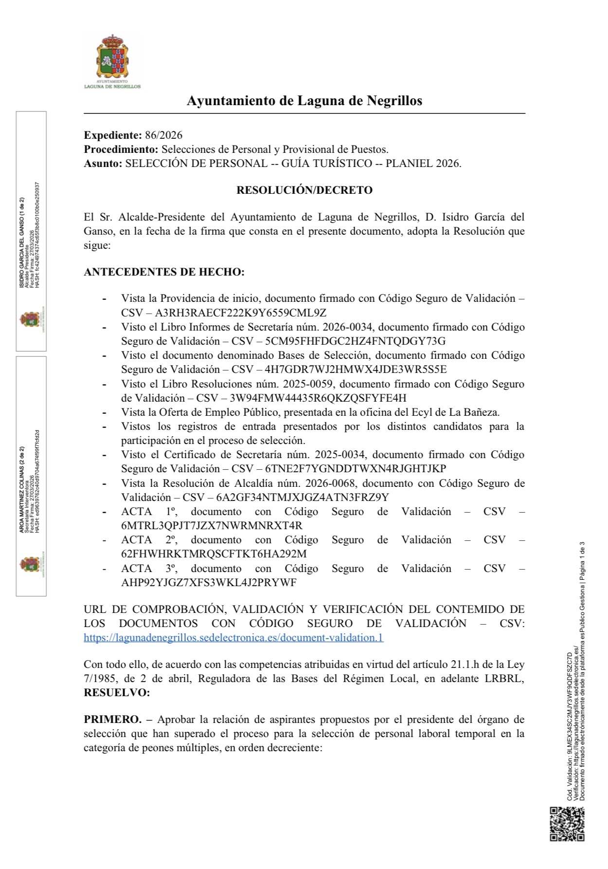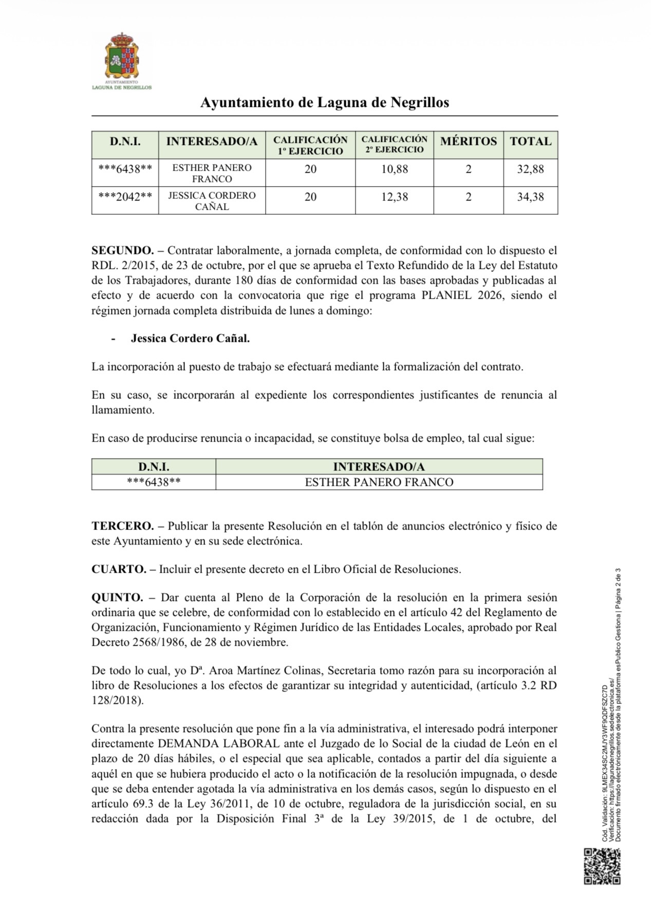 Resolución del proceso de selección de Técnico de Turismo con cargo financiero a la subvención PLANIEL 2026.