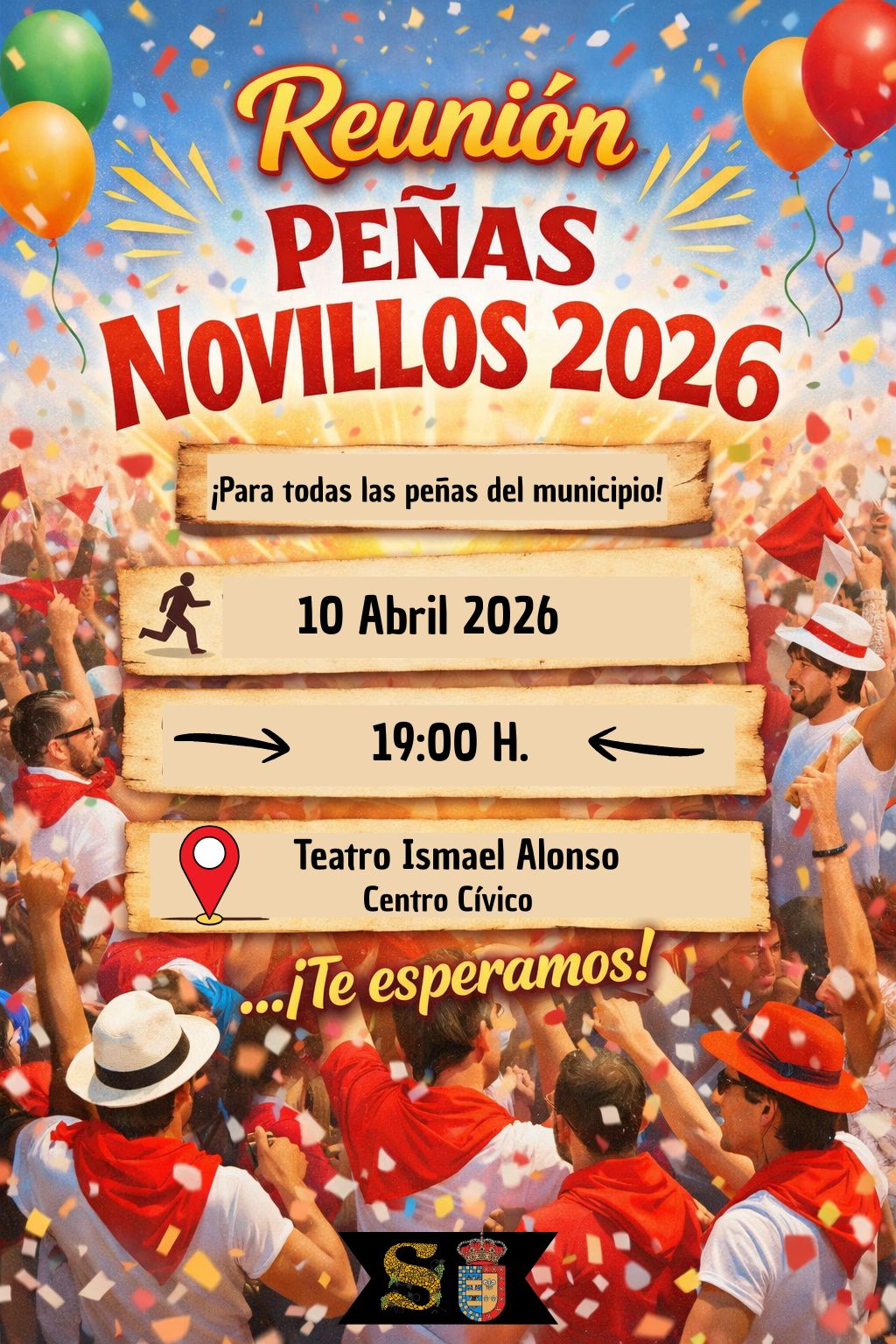 El próximo 10 de abril a las 19.00 h. en el Teatro Ismael Alonso del Centro Cívico tendremos una reunión para peñas y todas aquellas personas que quierarn participar, para la Fiestas de los Novillos 2026.