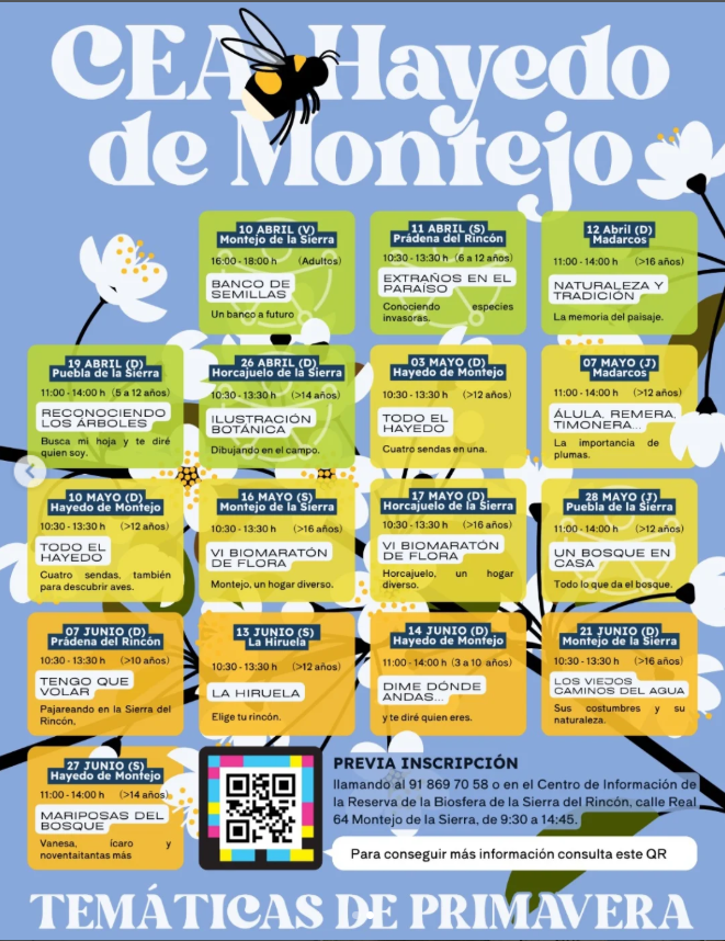 El Centro de Educación Ambiental Hayedo de Montejo presenta su programación de actividades para esta primavera, que se desarrollarán en distintos pueblos de la Sierra del Rincón, incluyendo Madarcos.