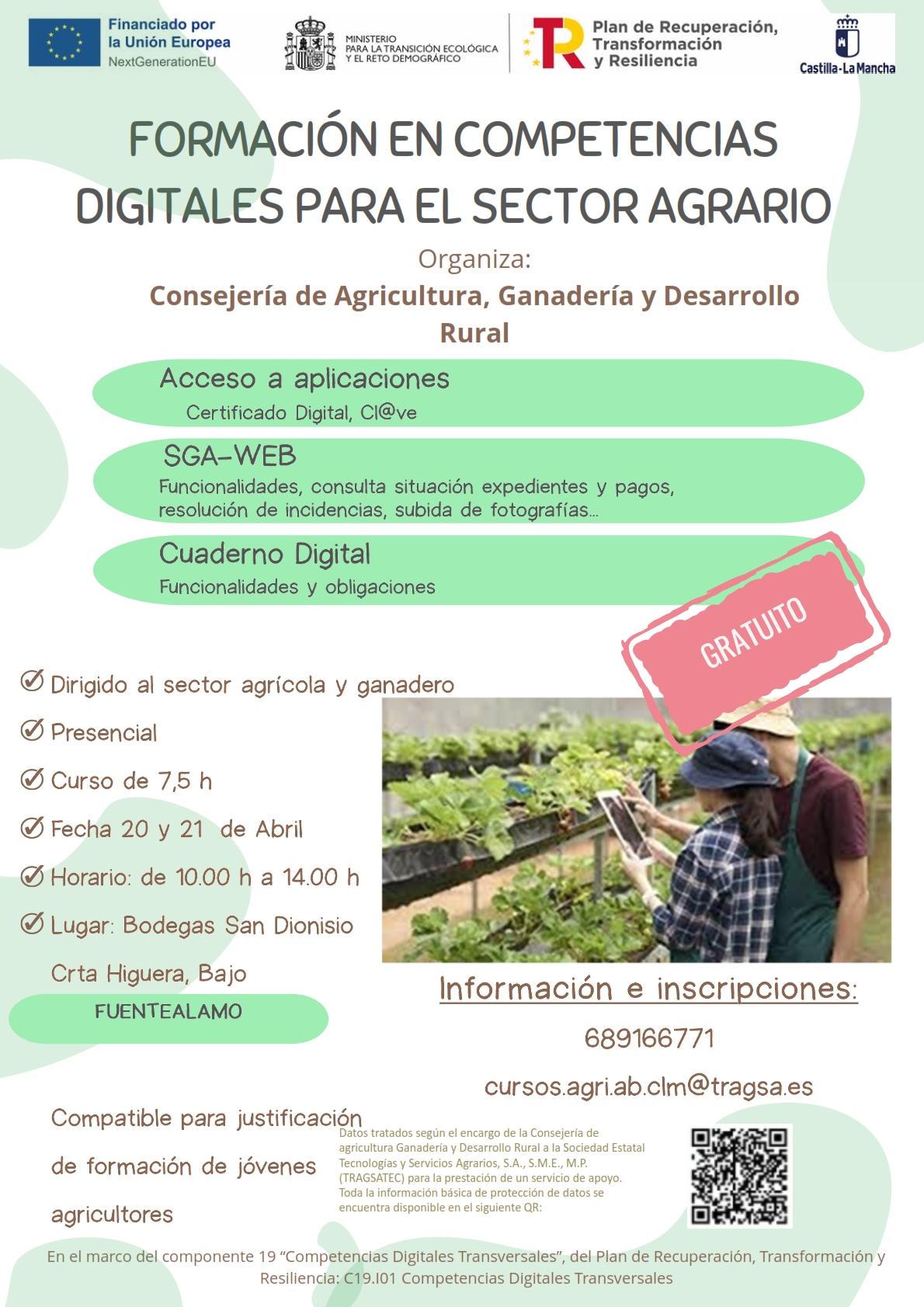 - Información e inscripciones: cursos.agri.ab.clm@tragsa.es o en el teléfono 689166771.