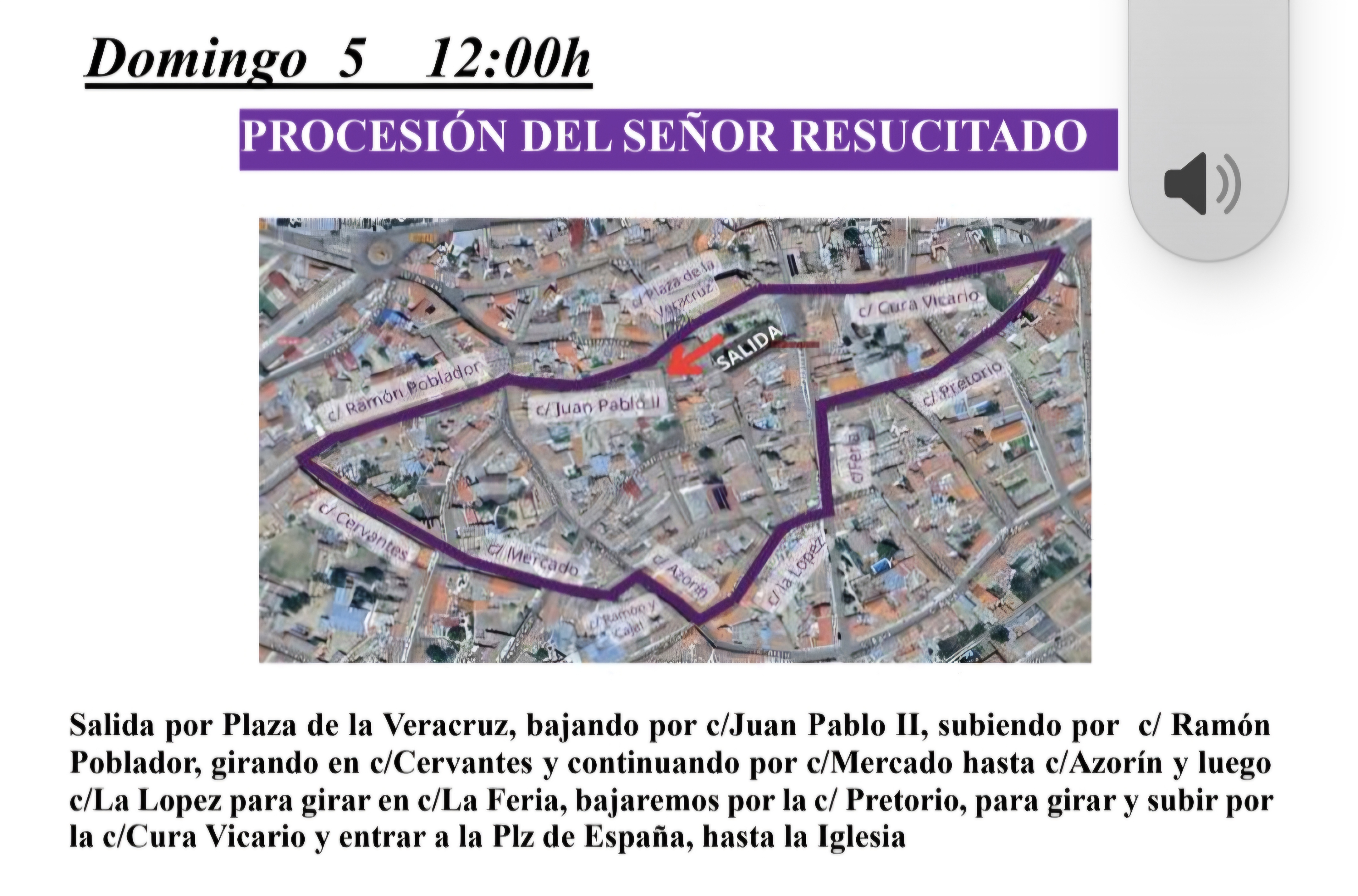 Con motivo de la Procesión del Resucitado, queda prohibido el aparcamiento, entre las 11.00 horas y las 14.00 horas de este domingo día 9 de abril, en las calles que conforman el itinerario de la procesión: