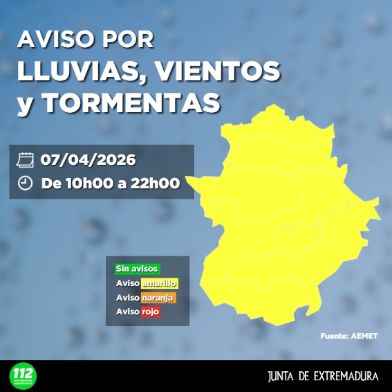 EL 112 ACTIVA ALERTA AMARILLA para toda la Comunidad Autónoma de Extremadura.