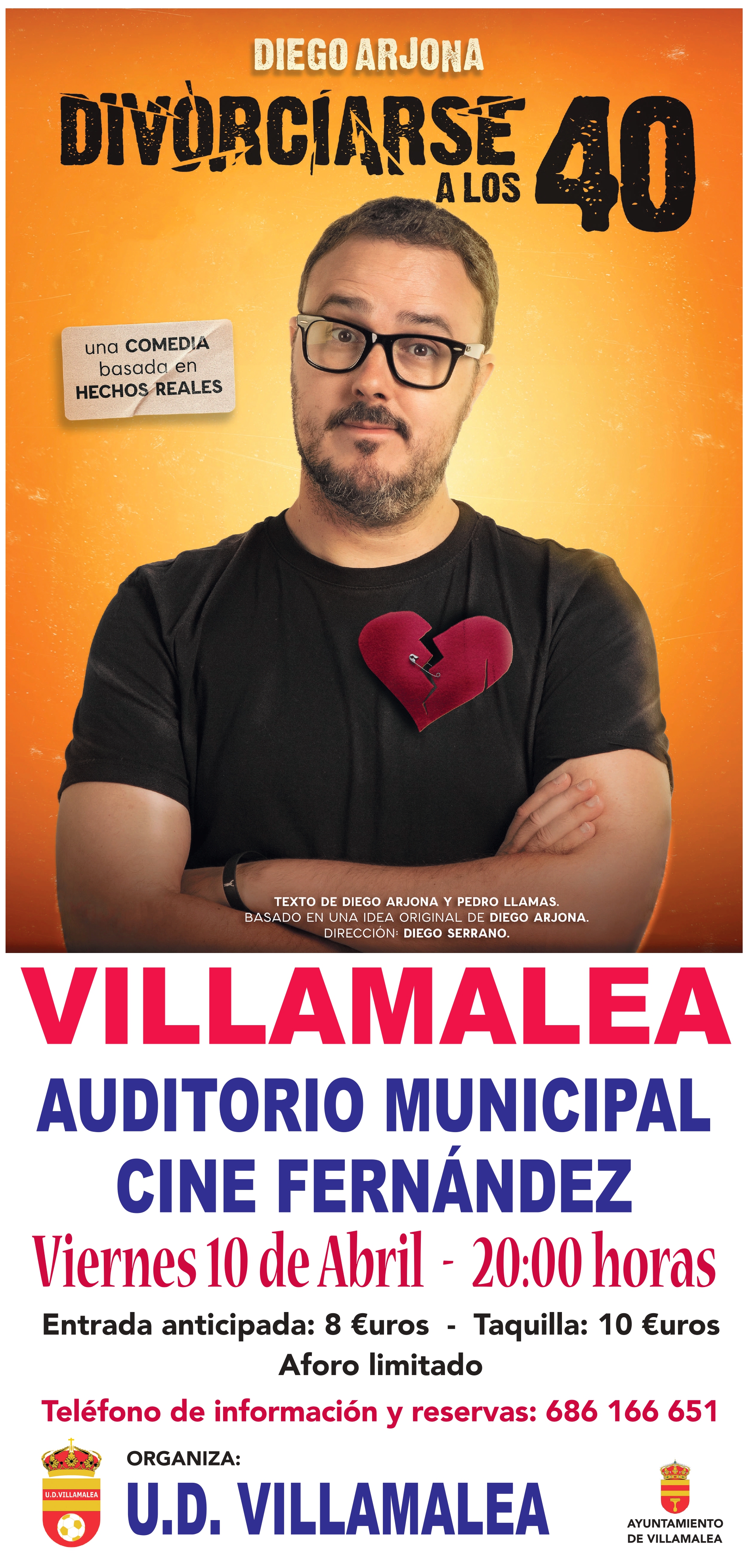 ๐ฟ๐๐๐พ๐๐๐๐พ๐๐ฬ๐: Divorciarse a los 40 no es un drama, ยกes una comedia! Diego Arjona convierte las rupturas, los hijos, las citas imposibles y el temido โvolver a empezarโ en 75 minutos de humor inteligente y cercano. Un espectรกculo fresco que mezcla monรณlogo, improvisaciรณn y situaciones que reconocerรกs al instante si has pasado (o temes pasar) por esa etapa. Un plan perfecto para desconectar, disfrutar y salir con otra mirada sobre el amor y el desamor.