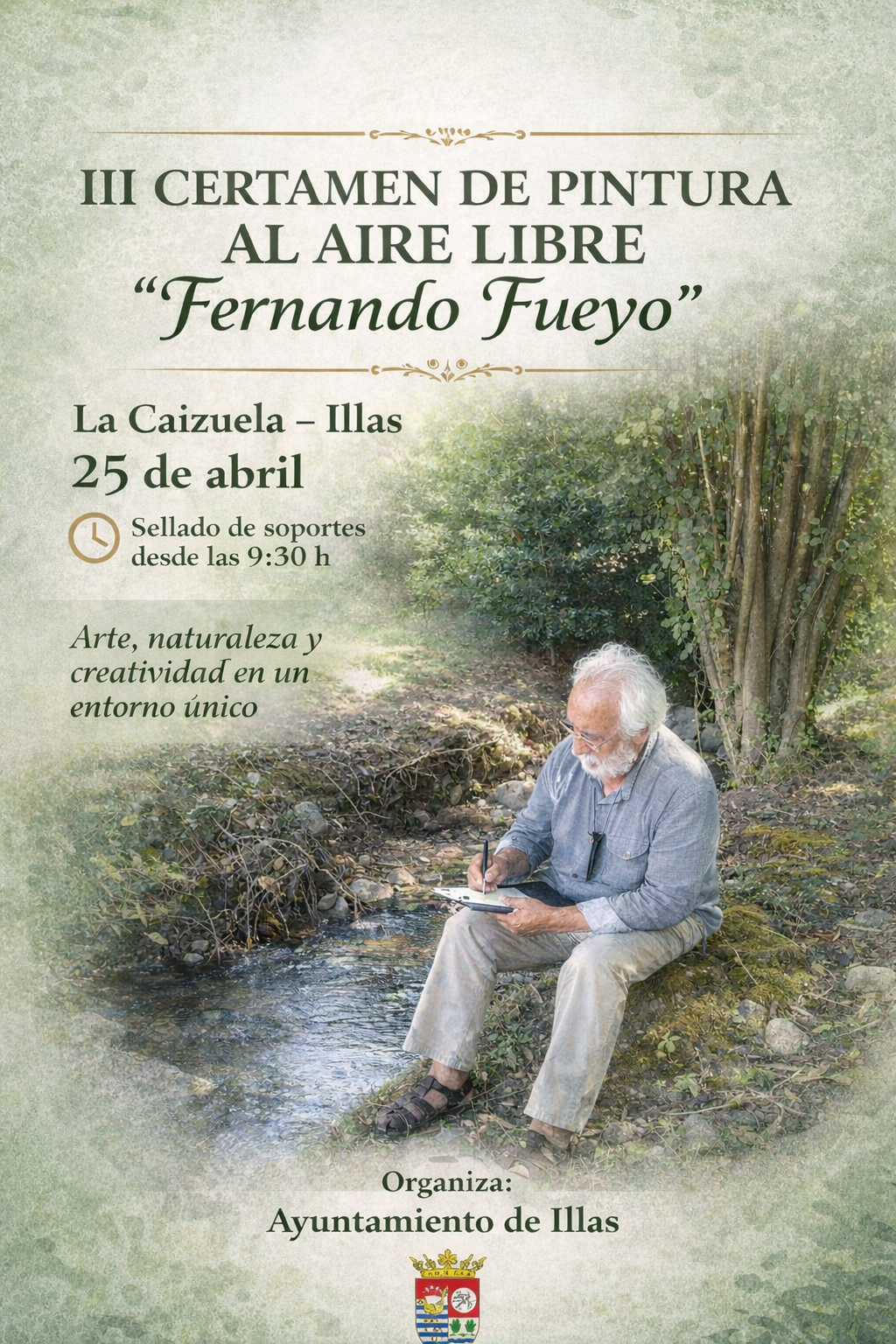 Tercer Certamen de pintura al aire libre "Fernando Fueyo" en La Caizuela Illas el 25 de abril, Se adjuntan bases con toda la información.