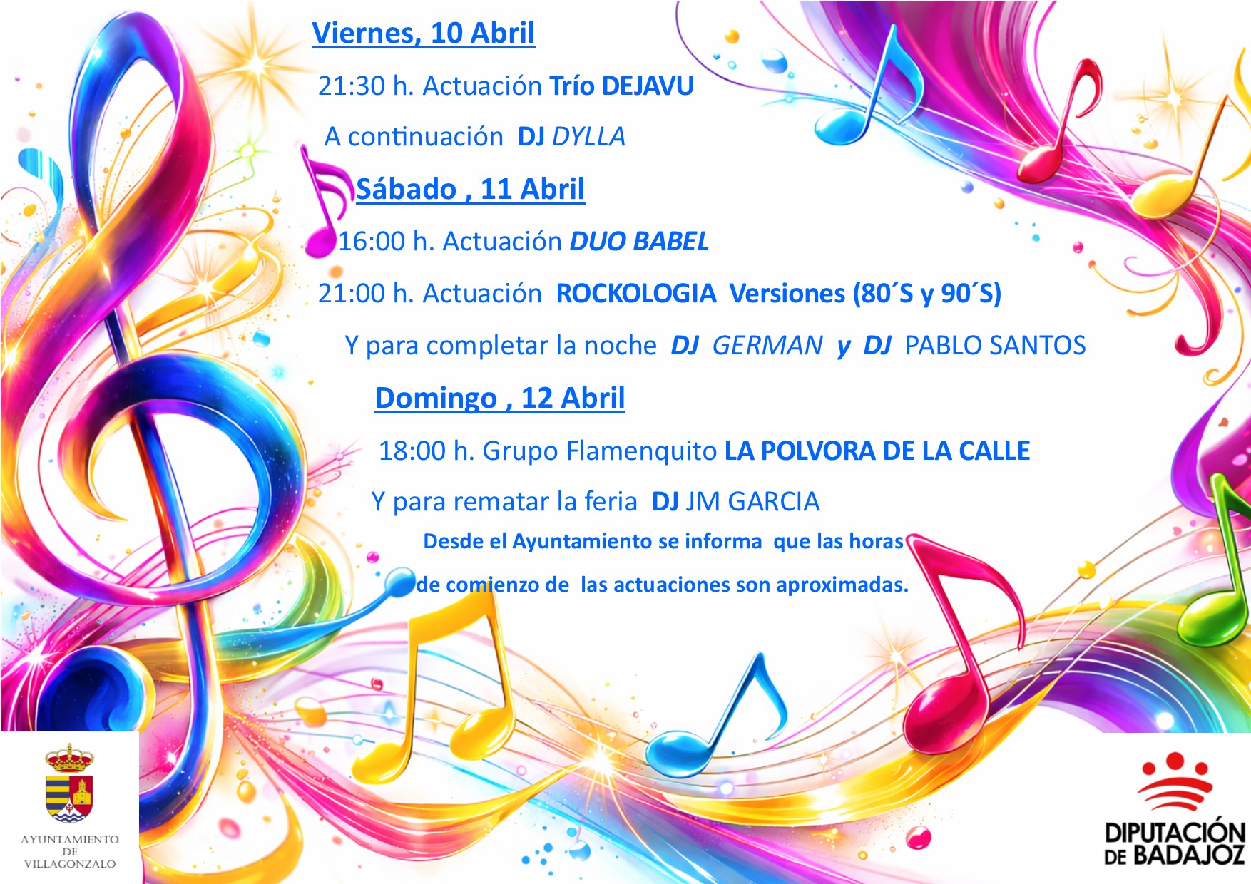 Se adjunta información sobre la programación de la feria de abril que tendrá lugar el próximo fin de semana.