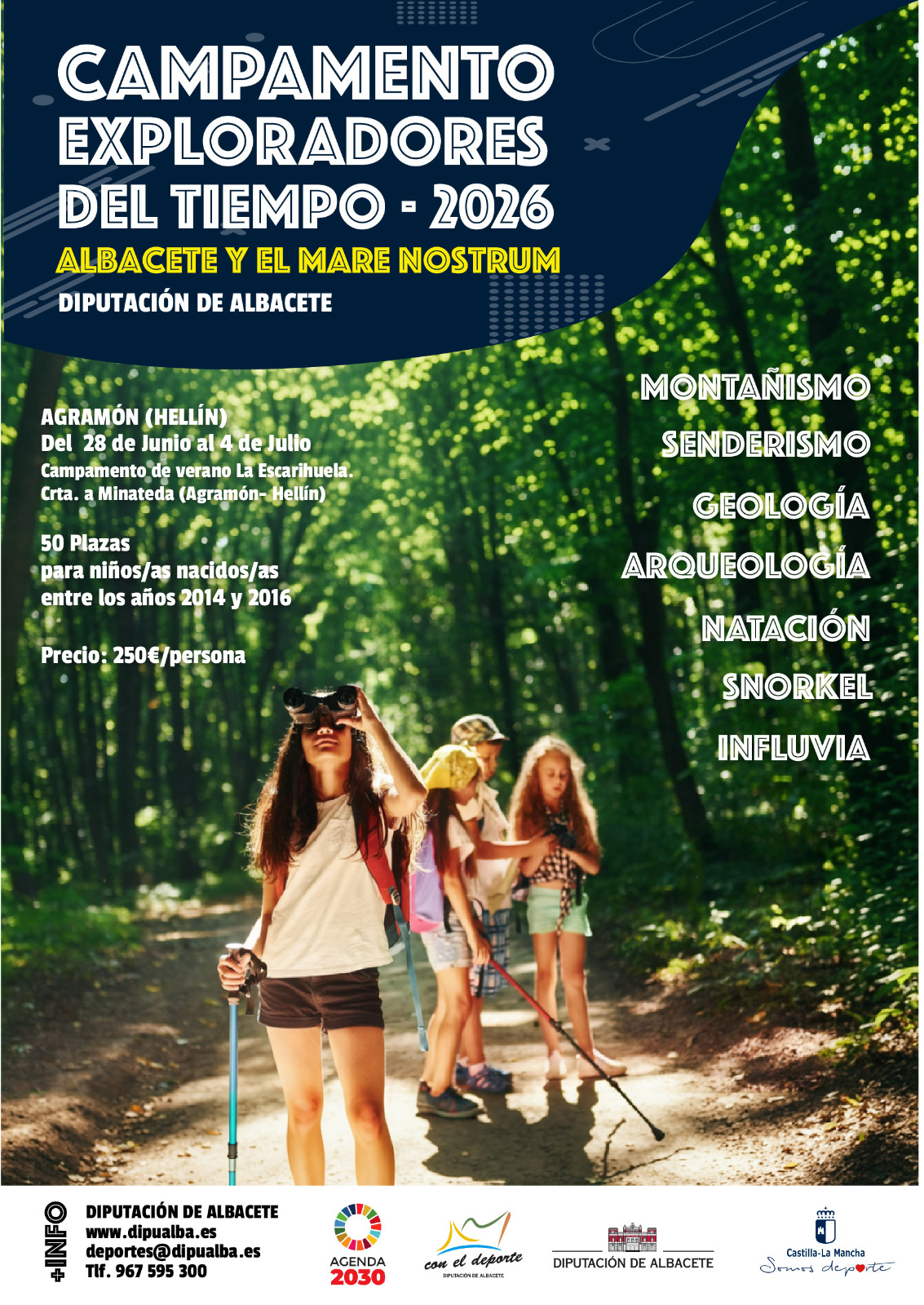 - Campamento Exploradores del Tiempo: del 28 de junio al 4 de julio en Agramón (Hellín) para nacidos/as en 2014, 2015 y 2016 cuota 250€ plazas 50.