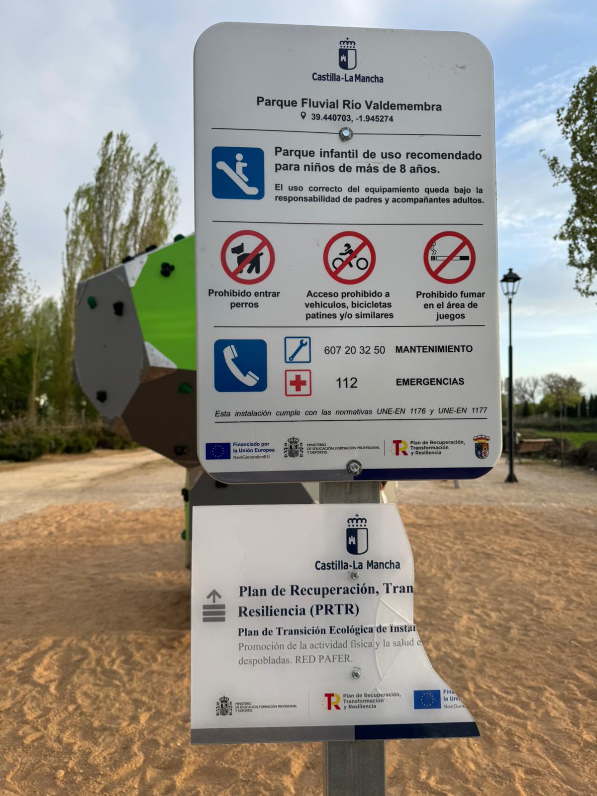 Lamentablemente, el cartel informativo recién instalado ya ha sufrido daños. Rogamos la colaboración de todos para cuidar y respetar estas instalaciones, que son para el disfrute de todos, especialmente de los niños y niñas del municipio.